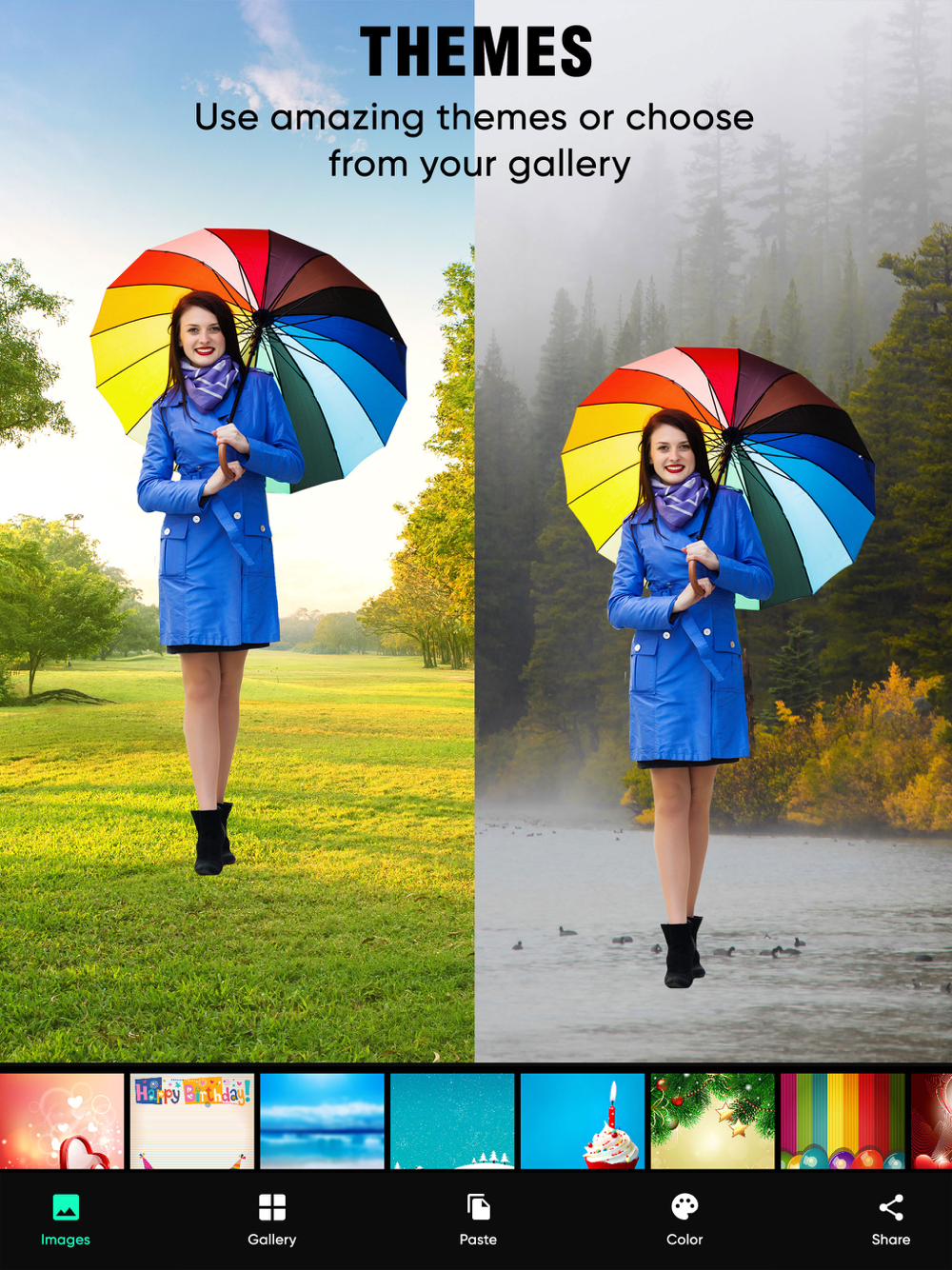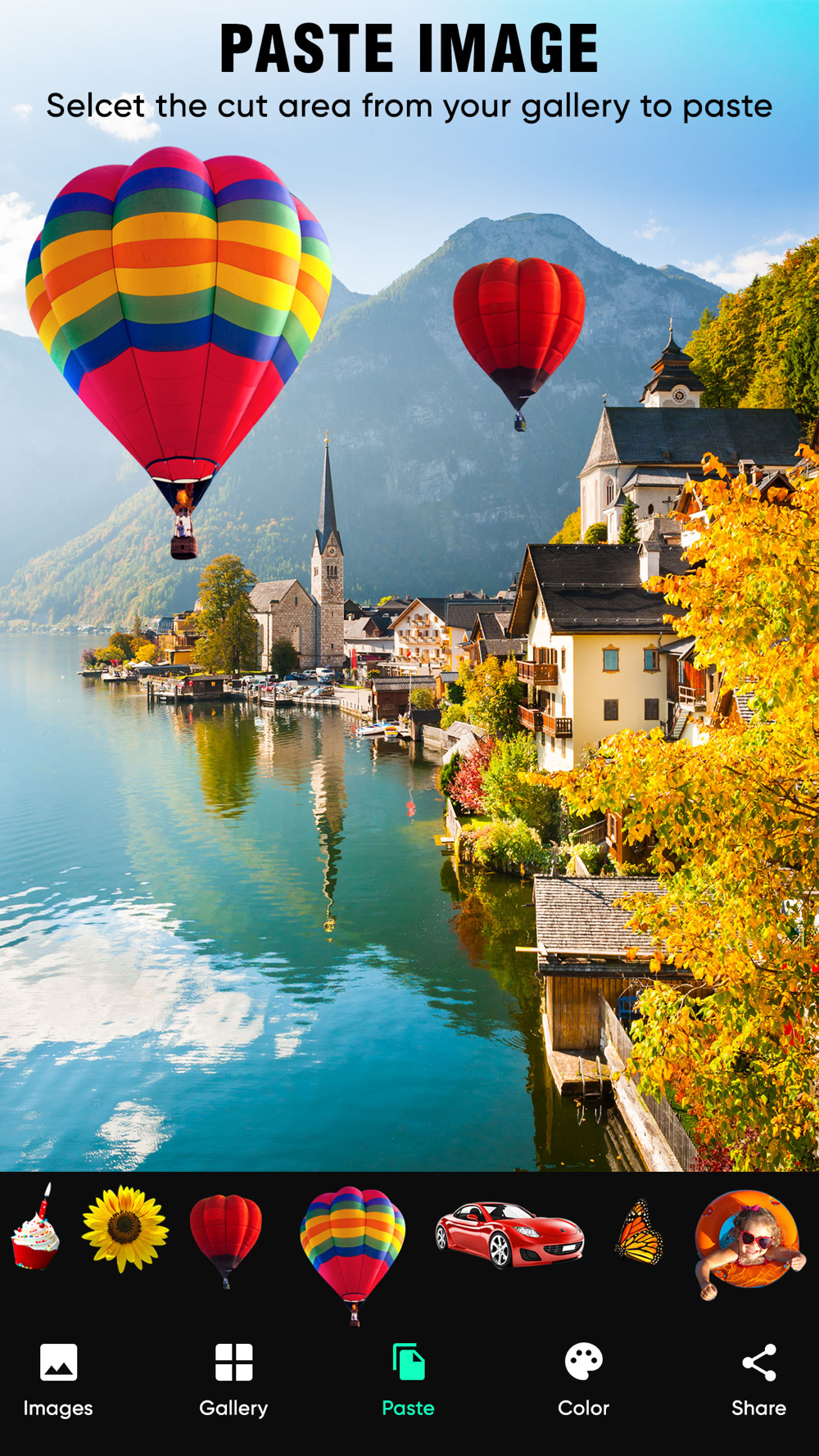 Photo cut paste lets you to select a specific portion of an image, cut it and paste it in another image by adding a beautiful background to it.