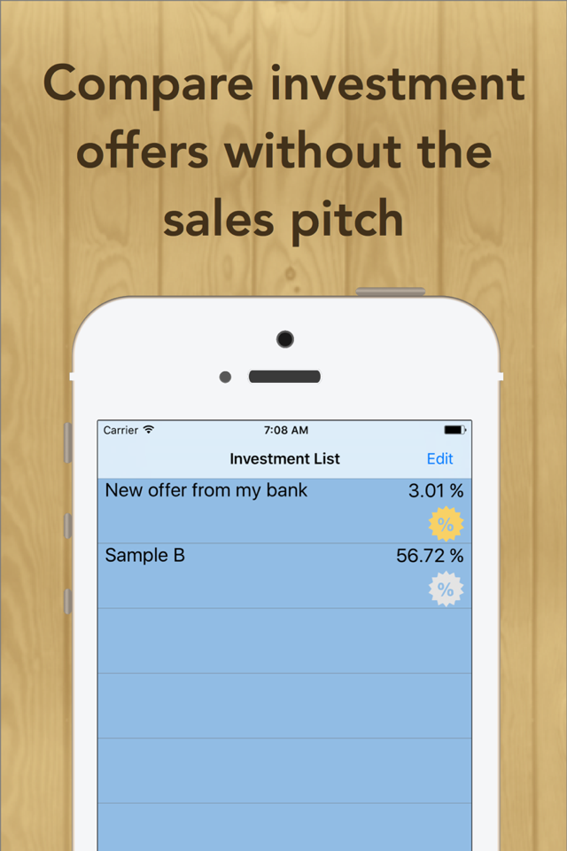 This app calculates the Internal Rate of Return, or IRR, for the investment plan entered.