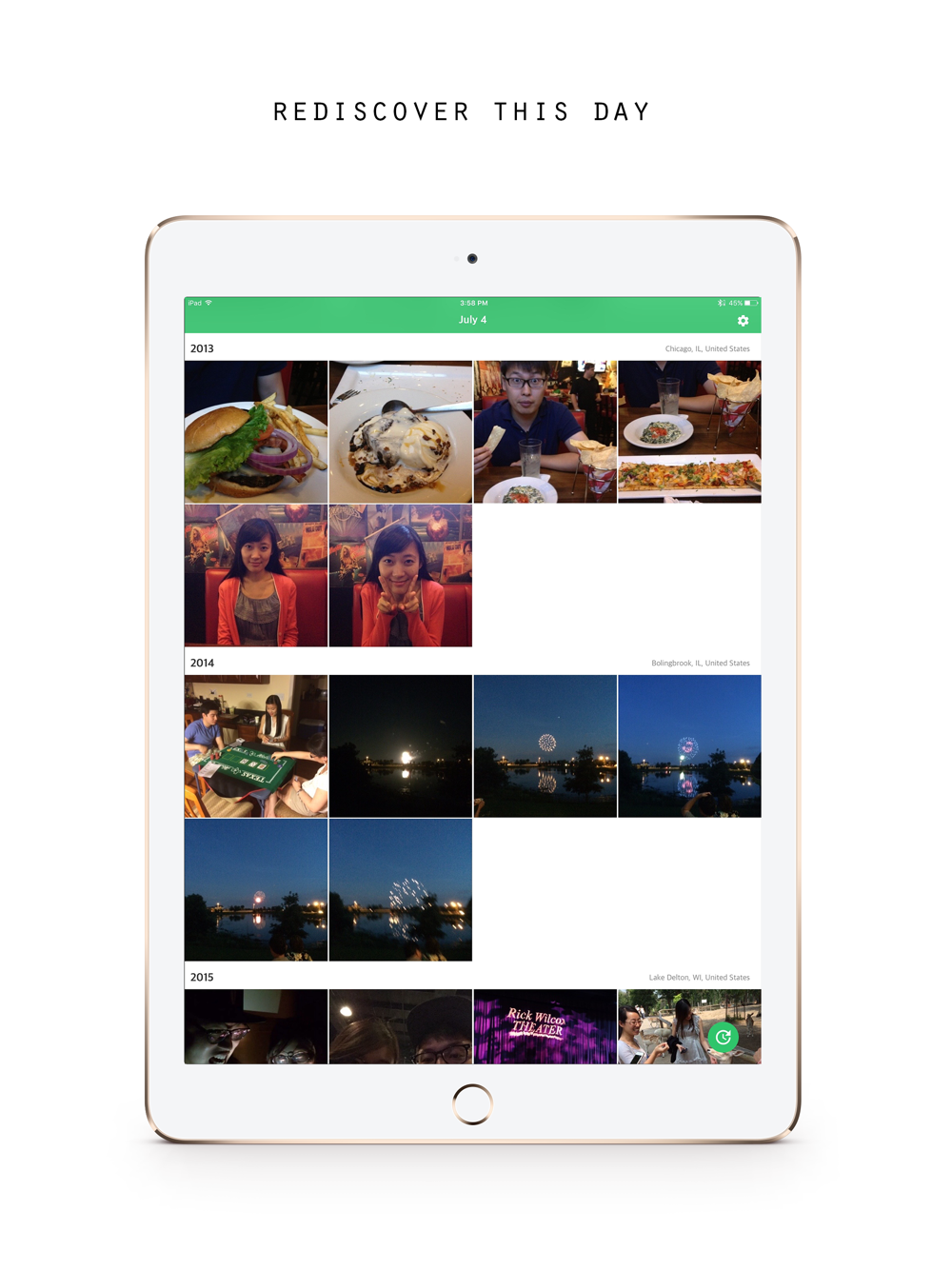 Rediscover a day in your life with this app. All the fun memories is one click away!