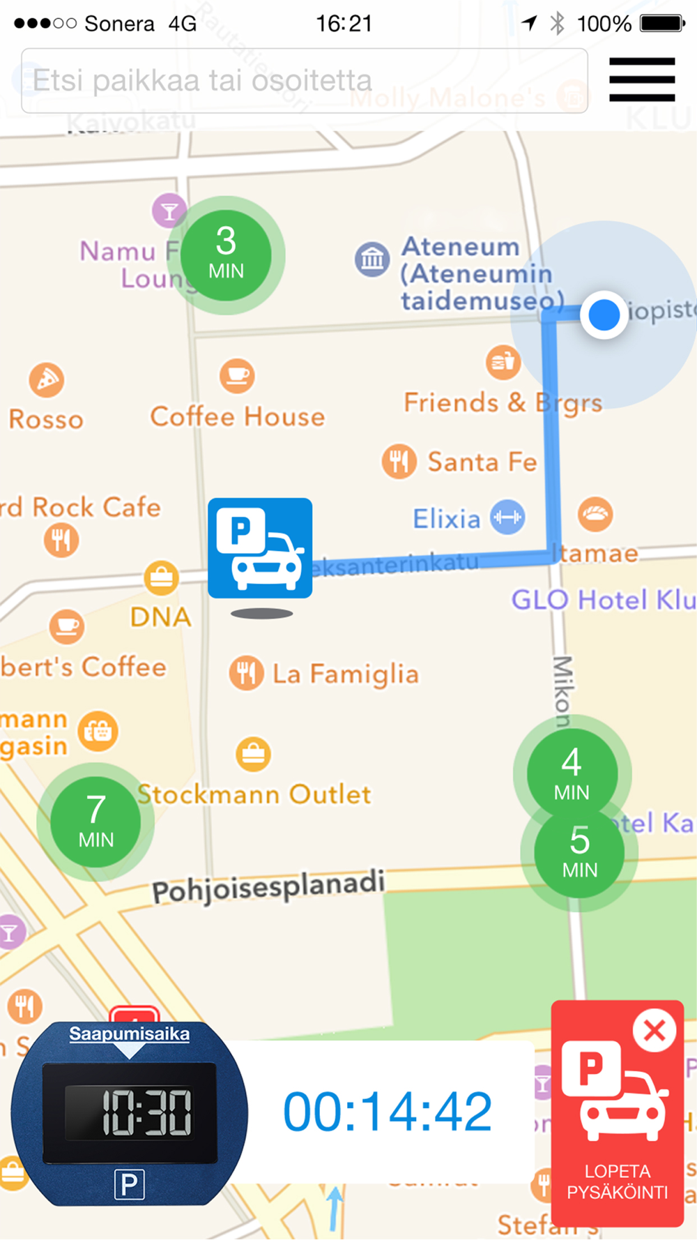 1. Etsi vapaa pysäköintipaikka sovelluksen kartan avulla.