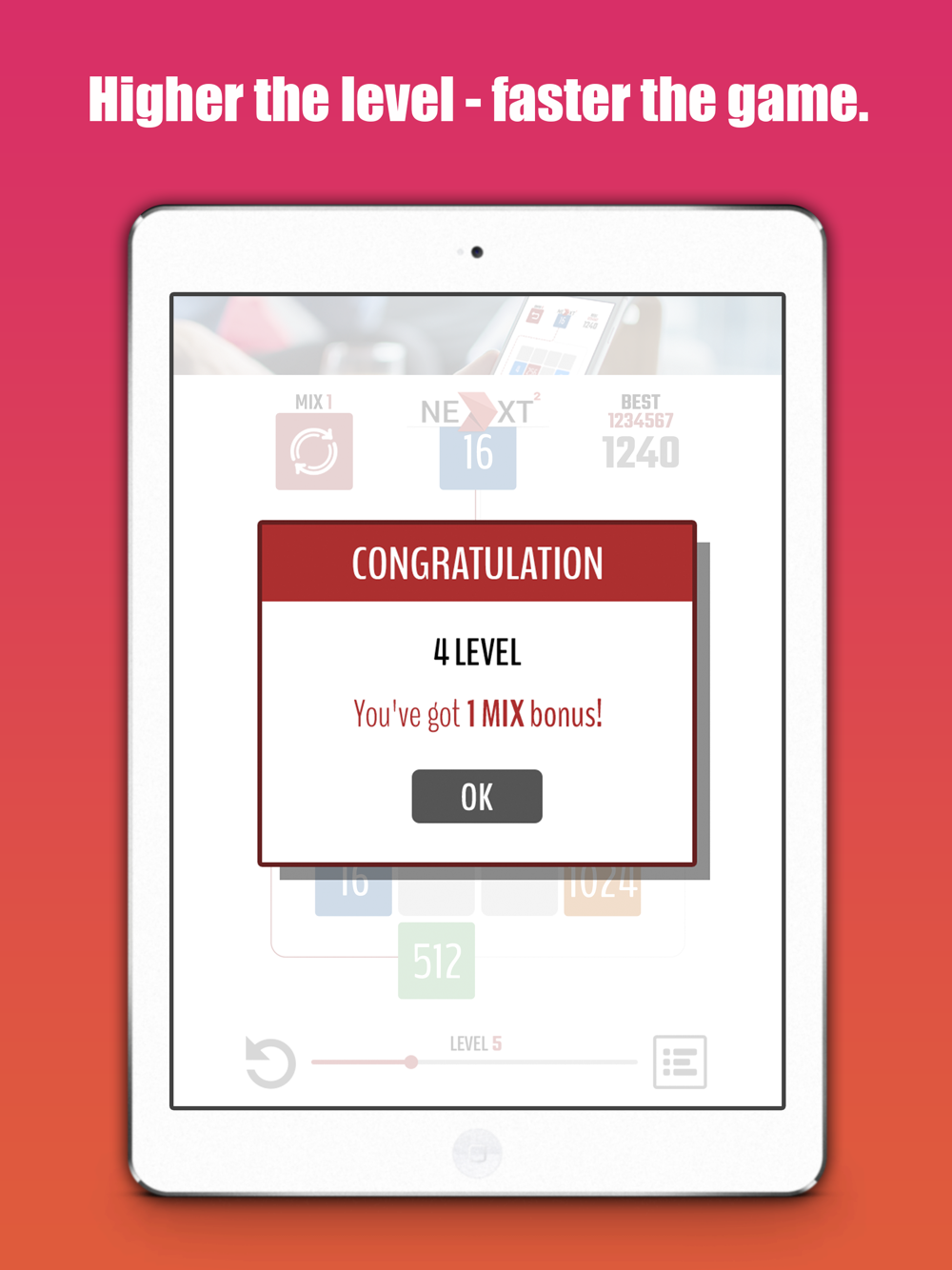 Plan your moves using the next tile, earn points and reach the highest level during one play. Higher the level - faster the game:
