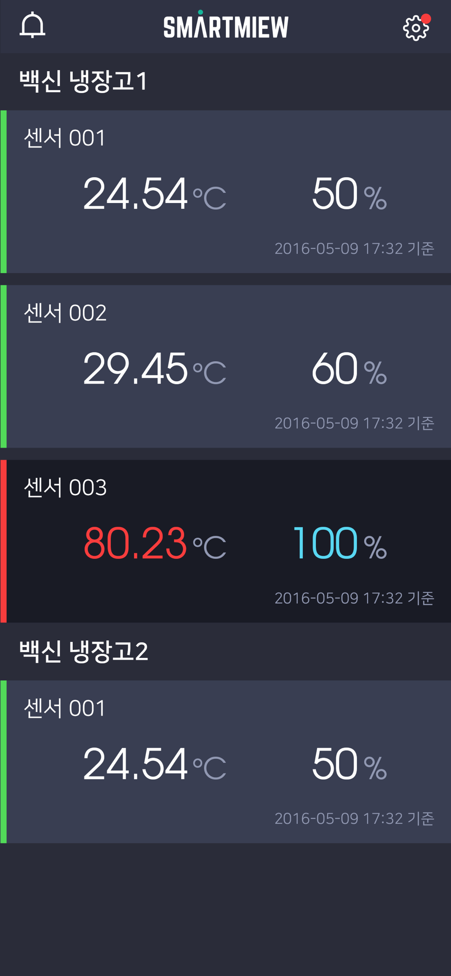 스마트뮤가 설치된 장소의 온도/습도 및 미세먼지농도를 한눈에 모니터링 하고 이상 상황을 즉시 알림을 받을 수 있는 앱입니다.