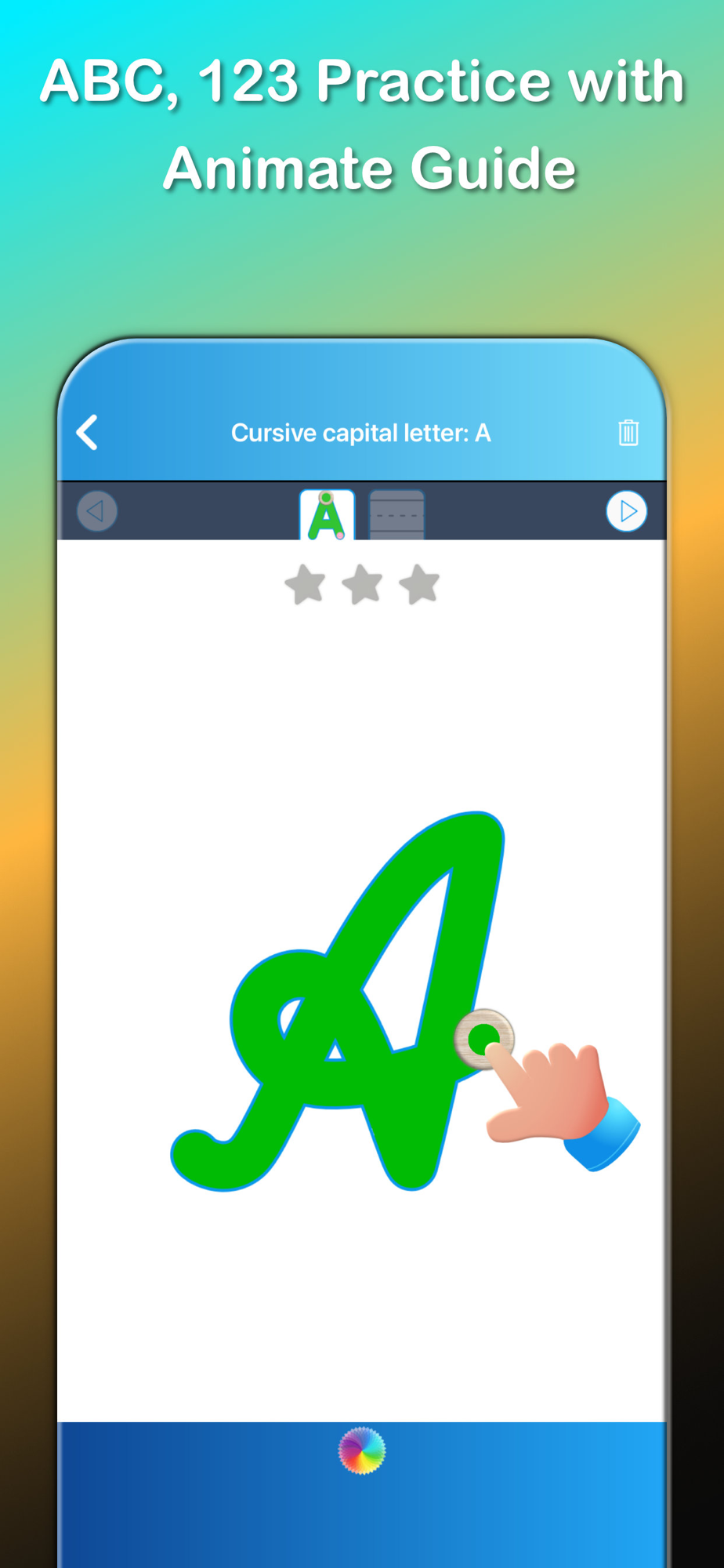 This app is like a playground for learning, made just for kids like you! Whether you're starting to learn your ABCs or you're curious about Cursive writing, this app is here to make learning feel like a big, fun party.