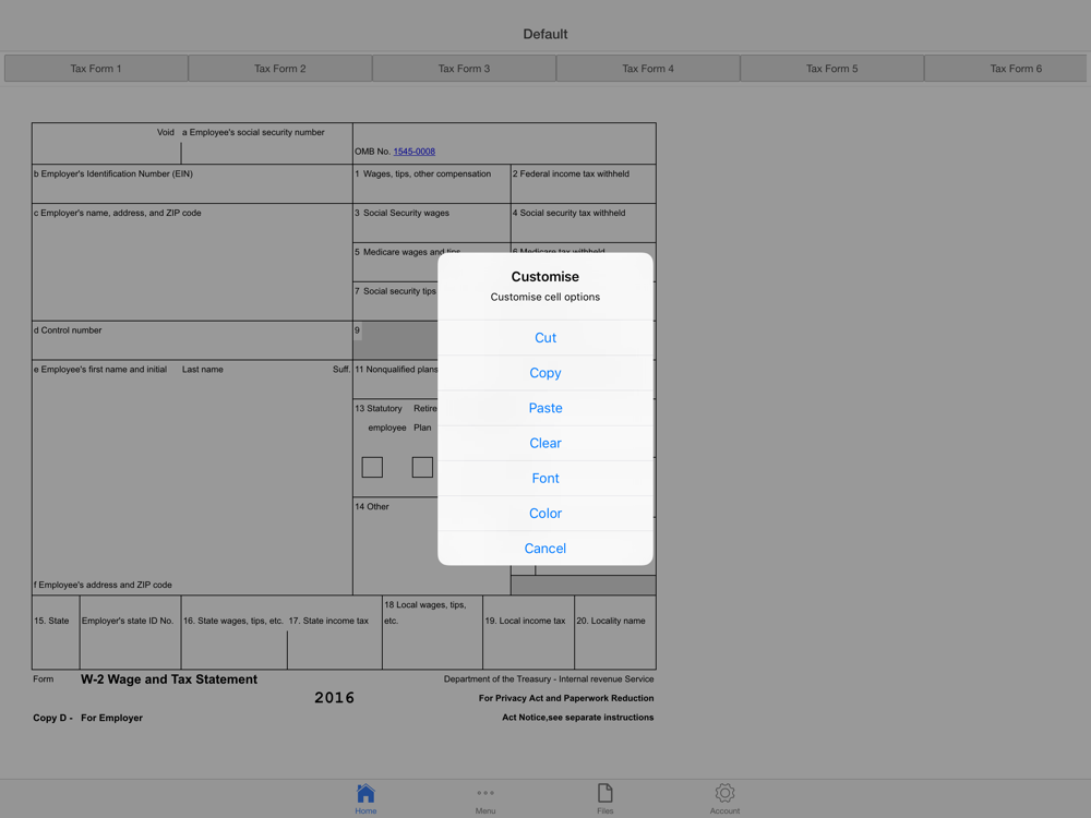 The intuitive interface allows you to make your W-2 form easily. The app comes with six W-2 forms which can be used simultaneously. Further, the app provides you with ability to send multiple tax forms from the same workbook. Simply tap on the worksheet and start creating your W-2 form.