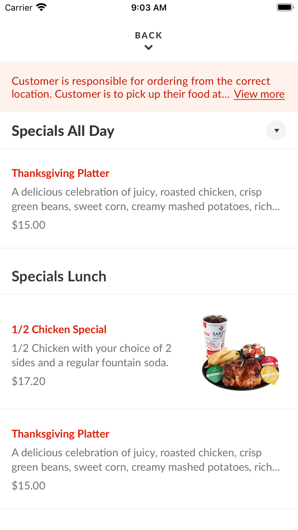 With the Sardi's mobile app, ordering food has never been easier. Whether you're looking for a quick snack or a full meal, we've got you covered. Just browse our easy-to-use menu, customize it how you'd like, place your order using our secure payment system, and sit back! A push notification will alert you when your order will be ready.