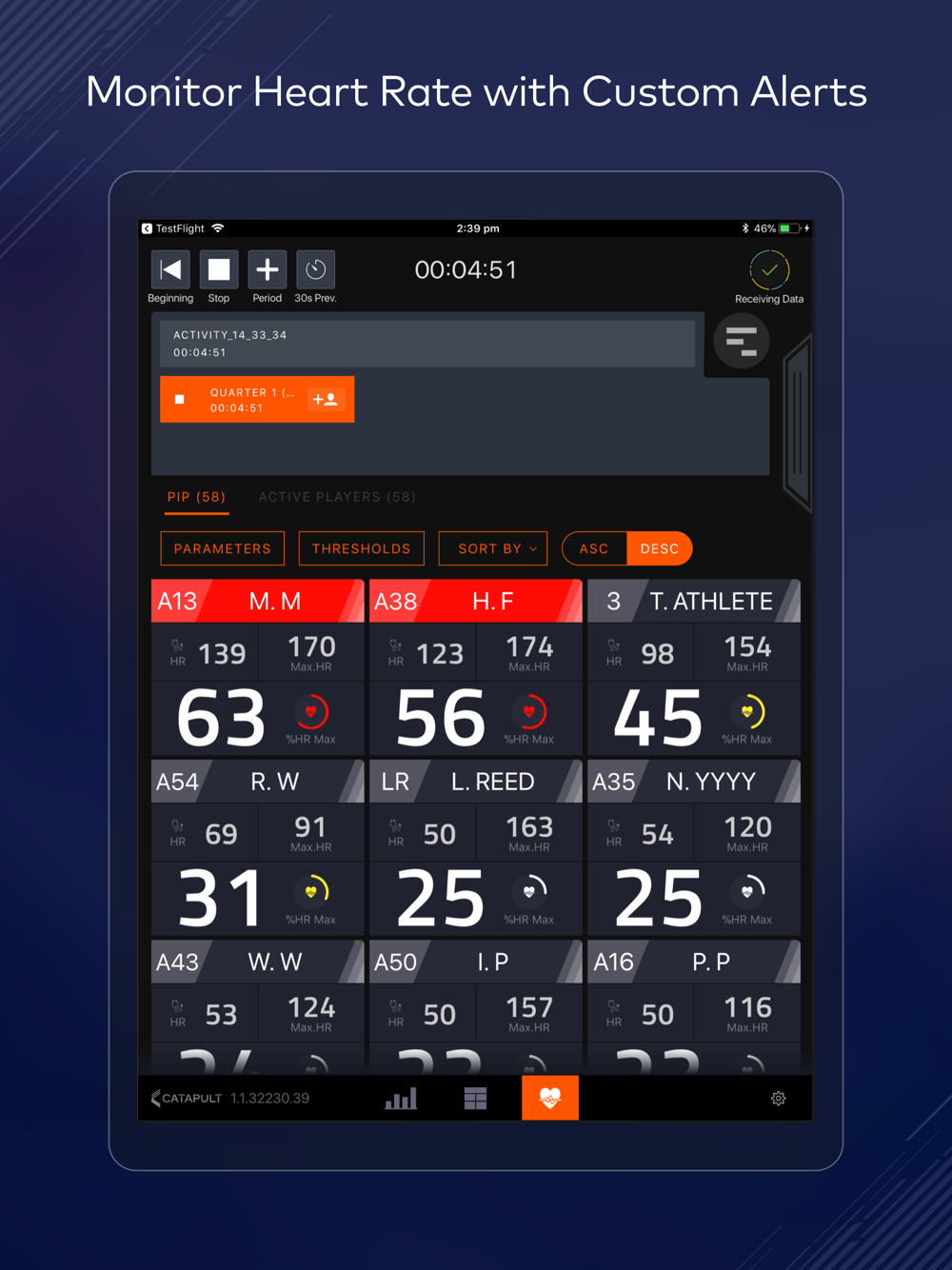 Use the Catapult OpenField+ Live app to track and monitor your athlete’s performance, real-time, by using the suite of key and customisable metrics at your disposal. Plan, periodise and execute your training sessions live from your iPad.