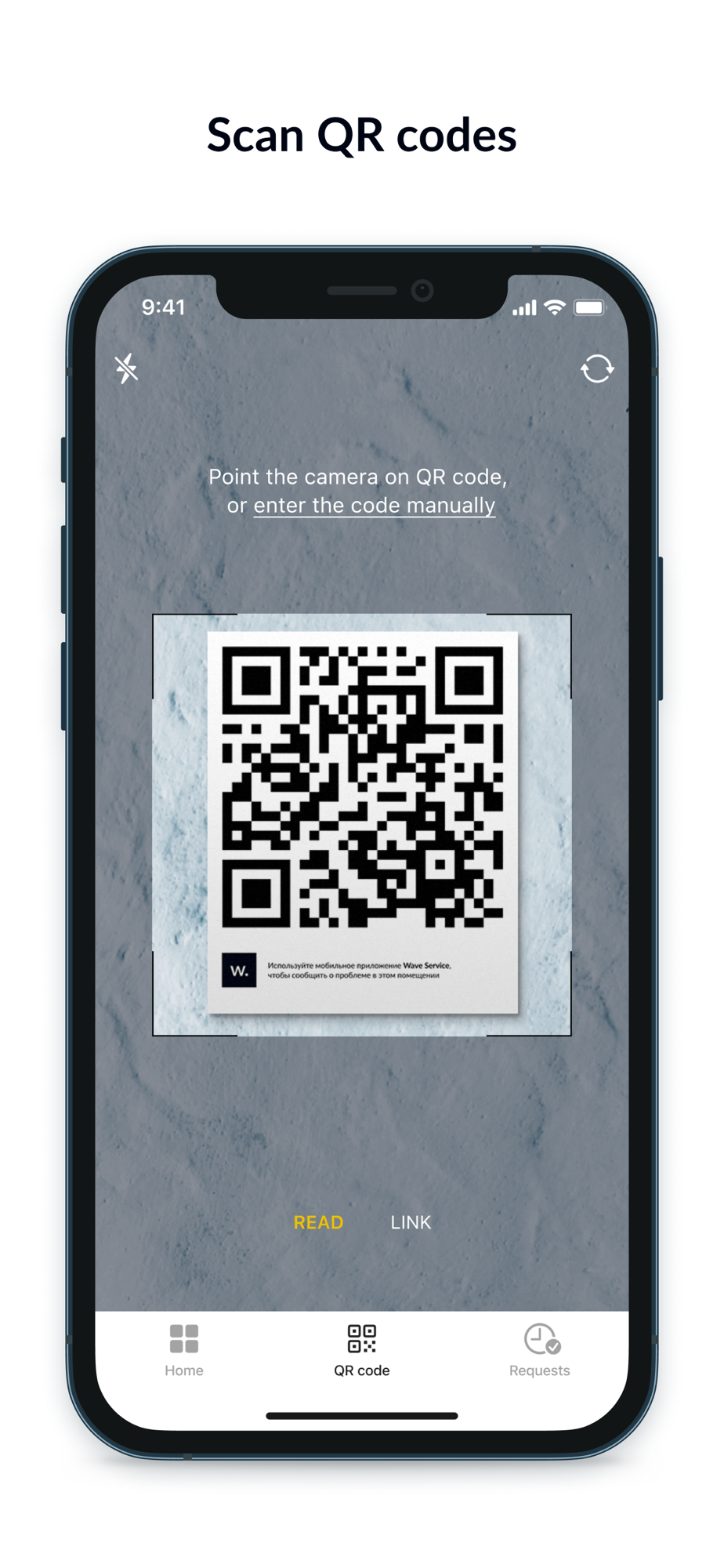 • Report issues in the building and create requests directly in the app or by scanning a QR code at the location