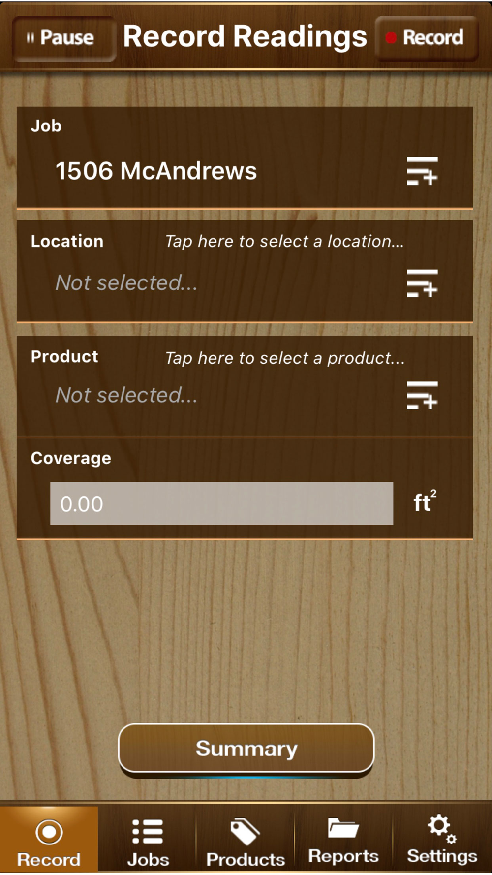 4. Press the "Record" tab at the bottom left to access the "Record Readings" screen.