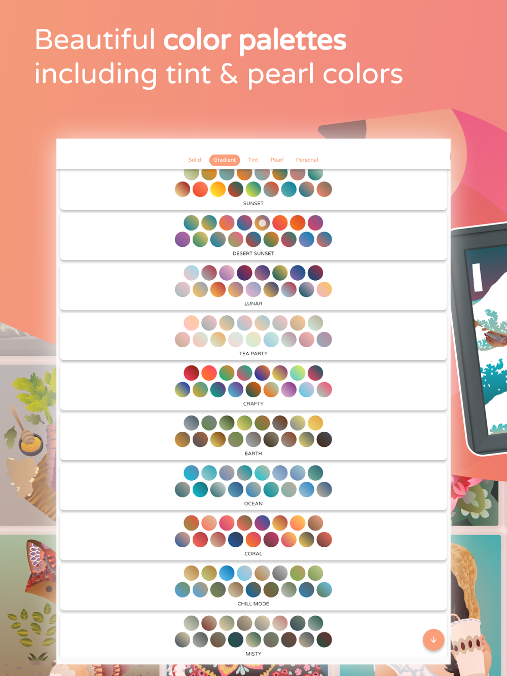 - Personalized Palettes: Open the gate to MILLIONS of colors by customizing your own palettes.