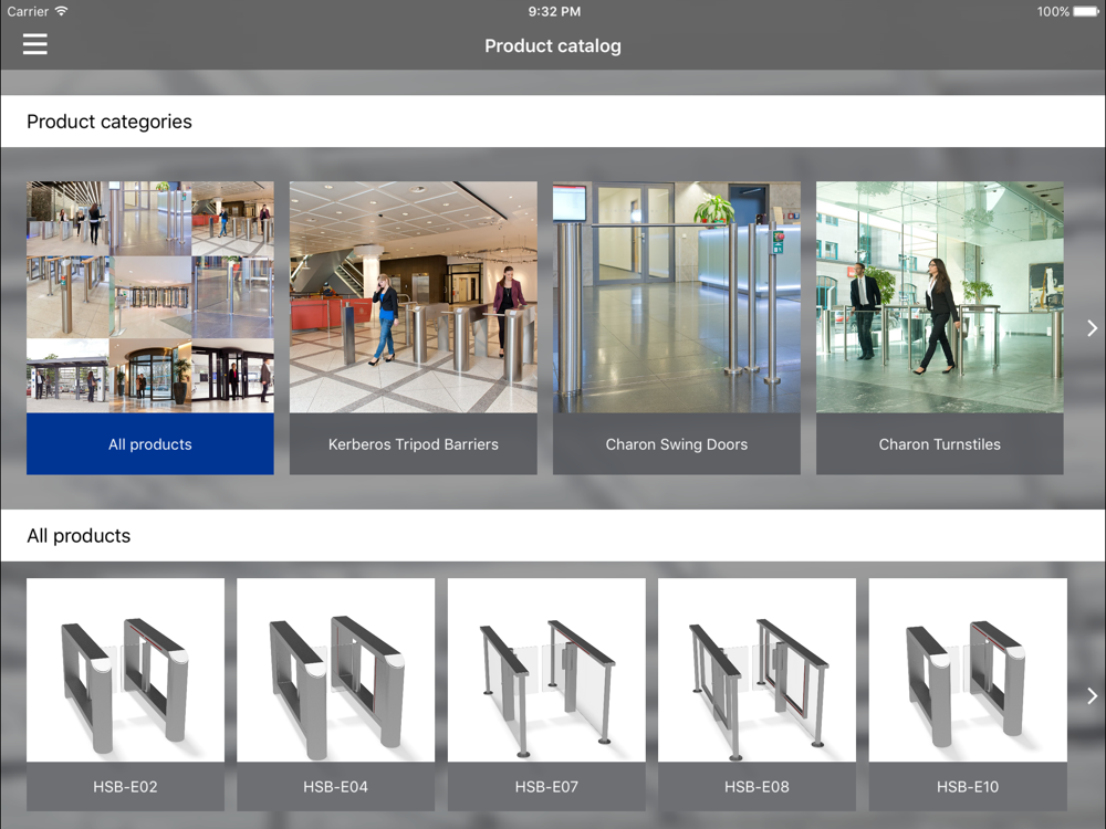 This app realistically visualises revolving doors, personal interlocks, turnstiles, sensor barriers and tripod turnstiles.
