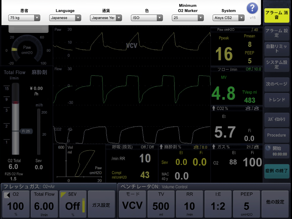 GE Healthcare’s ecoFLOW Simulator is an interactive tool featuring the user interface found on GE’s Aisys CS² and Avance CS² Anesthesia Carestations. ecoFLOW is a display option that provides a graphical representation of oxygen flow and anesthetic agent use. Through an easy to view digital display, the ecoFLOW option can show you your pre-set target and calculate the cost of your agent consumed in real-time. The simulator allows users a limited set of controls that are intended to demonstrate the ecoFLOW display and the response to driving lower fresh gas flows. ecoFLOW has the potential to deliver a positive impact on the environment and reduce agent costs when agent waste gases are reduced.