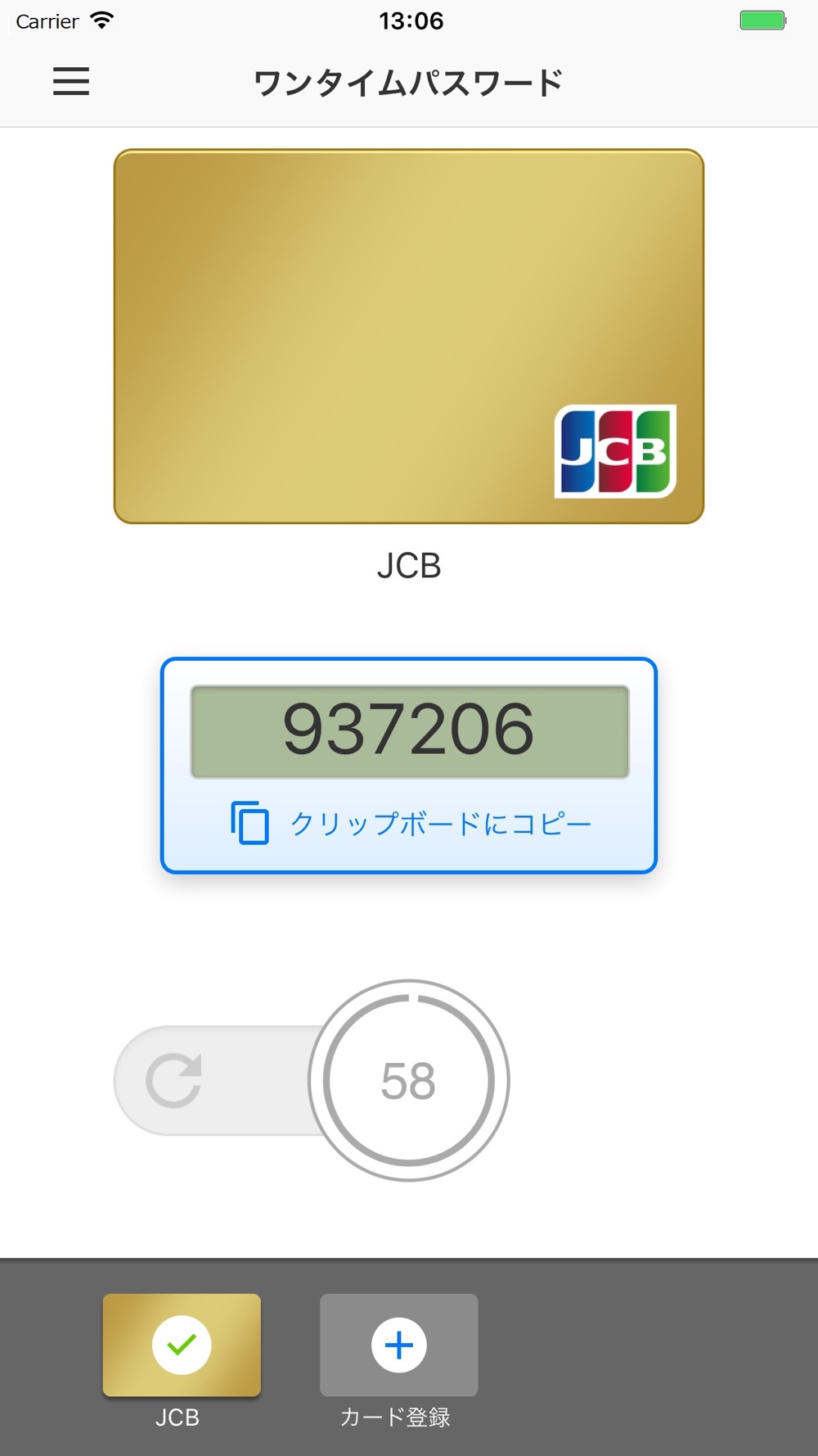 JCBが提供する、インターネットショピング認証サービス(J/Secure)のワンタイムパスワード発行アプリです。