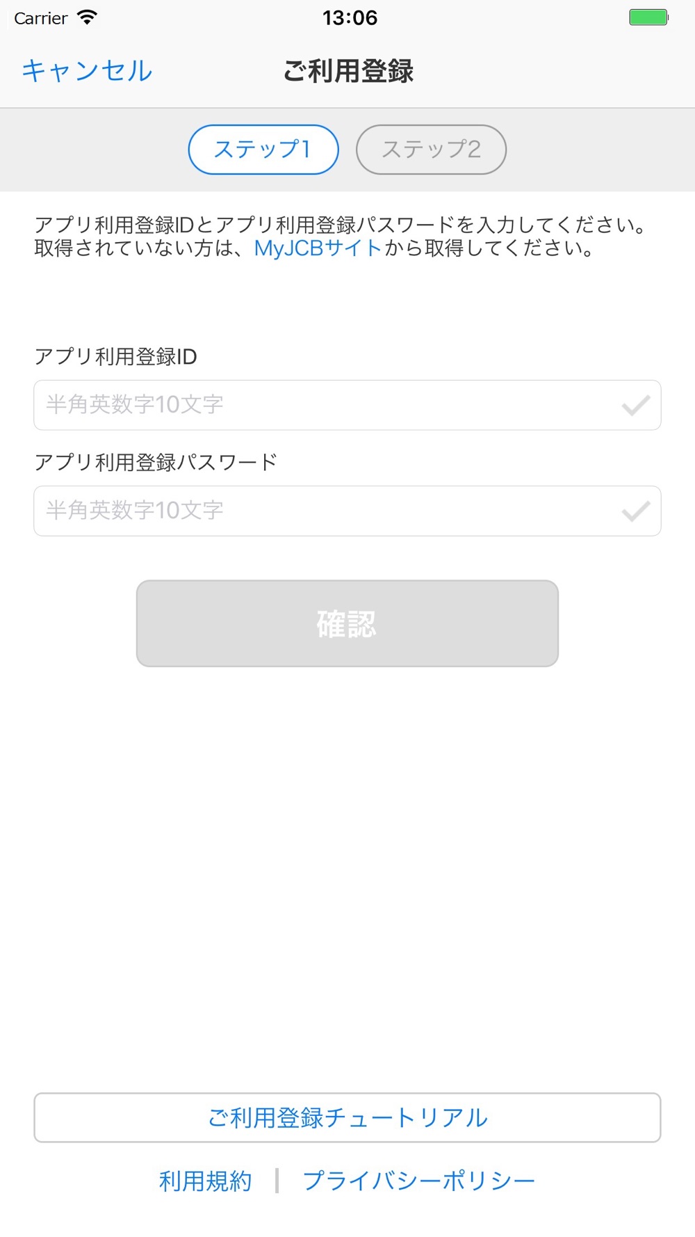 ・「アプリ利用登録ID」、「アプリ利用登録パスワード」は発行後、30分間有効です。30分を超えた場合無効となりますので、MyJCBより再度ご利用登録を行い、ID・パスワードを発行してください。