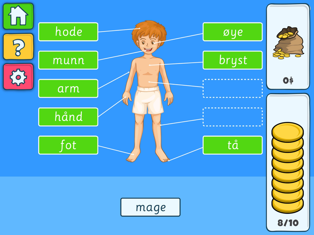 Kroppen er en morsom app som på en underholdende måte vil lære barnet ditt navnet på de ulike kroppsdelene.