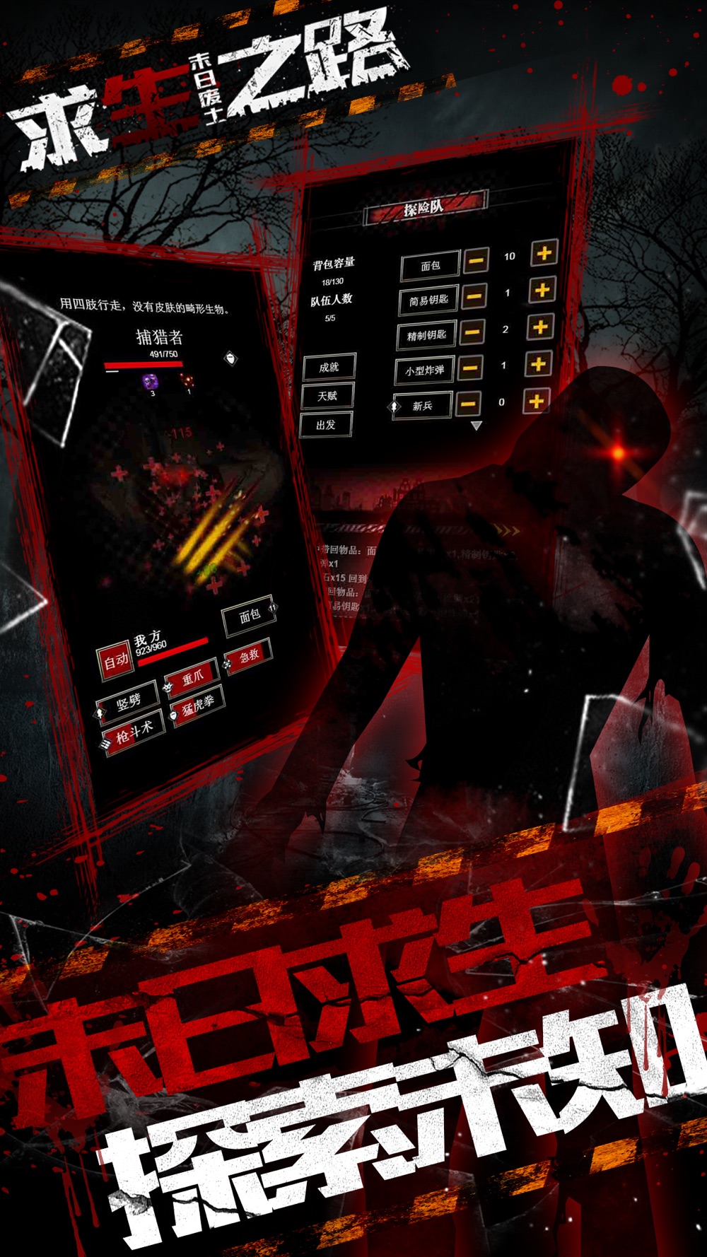 《求生之路:末日废土》是一款模拟经营与冒险战略PVP战斗的重度联网游戏,游戏由红黑两种颜色绘制,为玩家营造了一个充满神秘诡谲的氛围。
