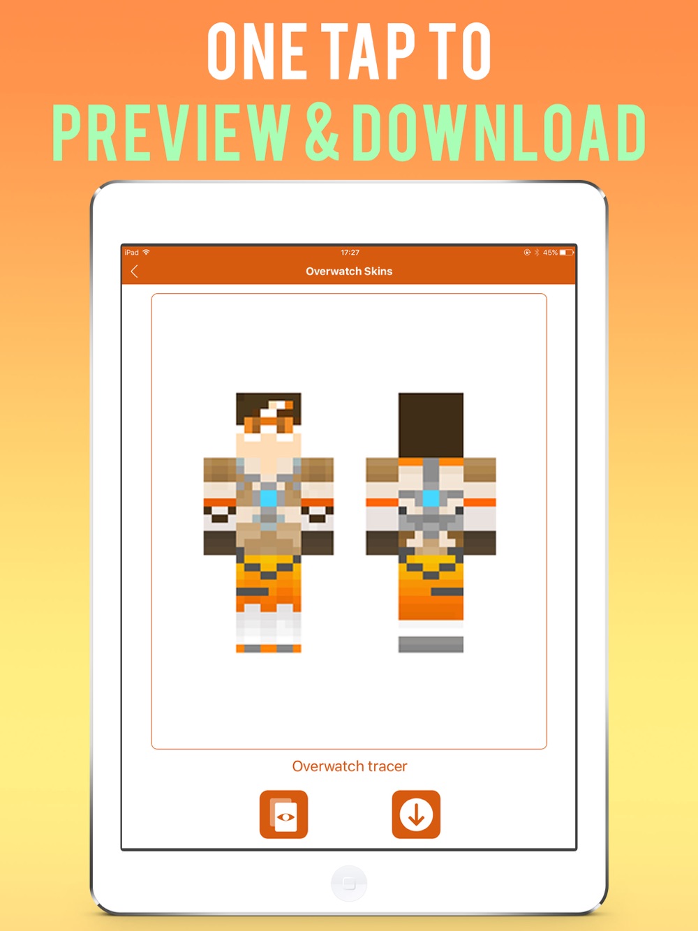 Dozens of Overwatch skins are available for Minecraft now! Download this app for free and you can find various skins of Overwatch heroes inside.