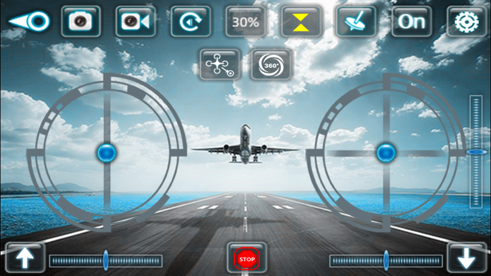 2.Display the real-time video which taken by the camera on the aircraft,video data transmitted via 2.4G WiFi protocol.