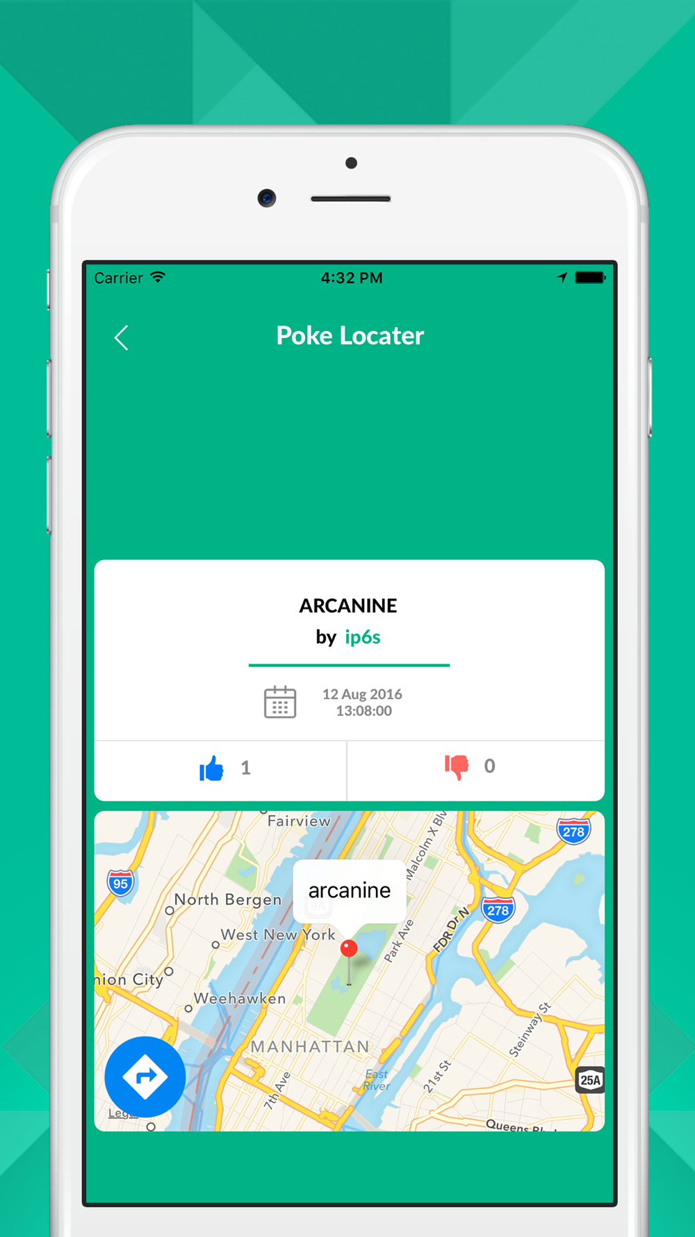 iPoke Locator for Pokemon GO use apple map for navigation option so you can easy reached at Pokemon location.