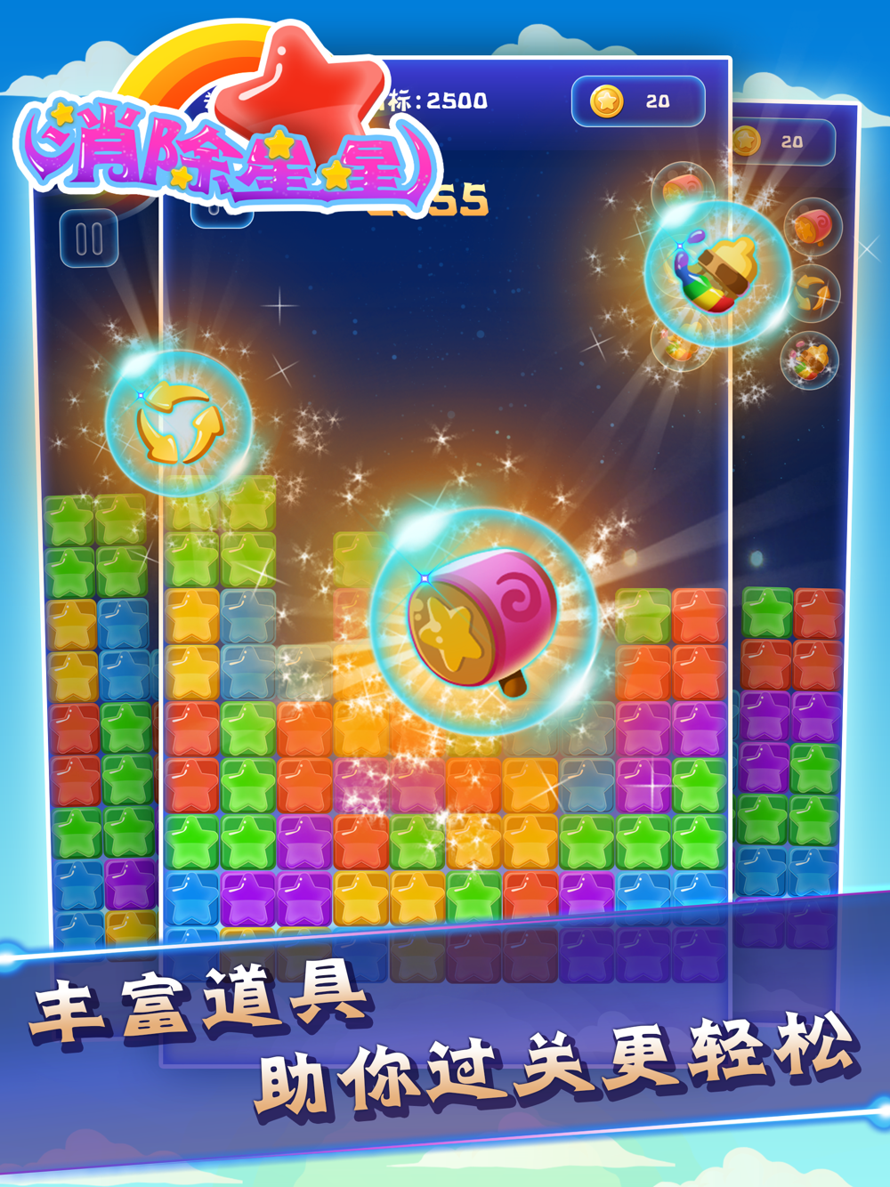 夜空中最亮的星,这一颗就是属于你的!即玩即停、争分夺秒、头脑风暴、高分比拼,多种星星玩法,满足你闲时所有需要,让你HIGH到爆!