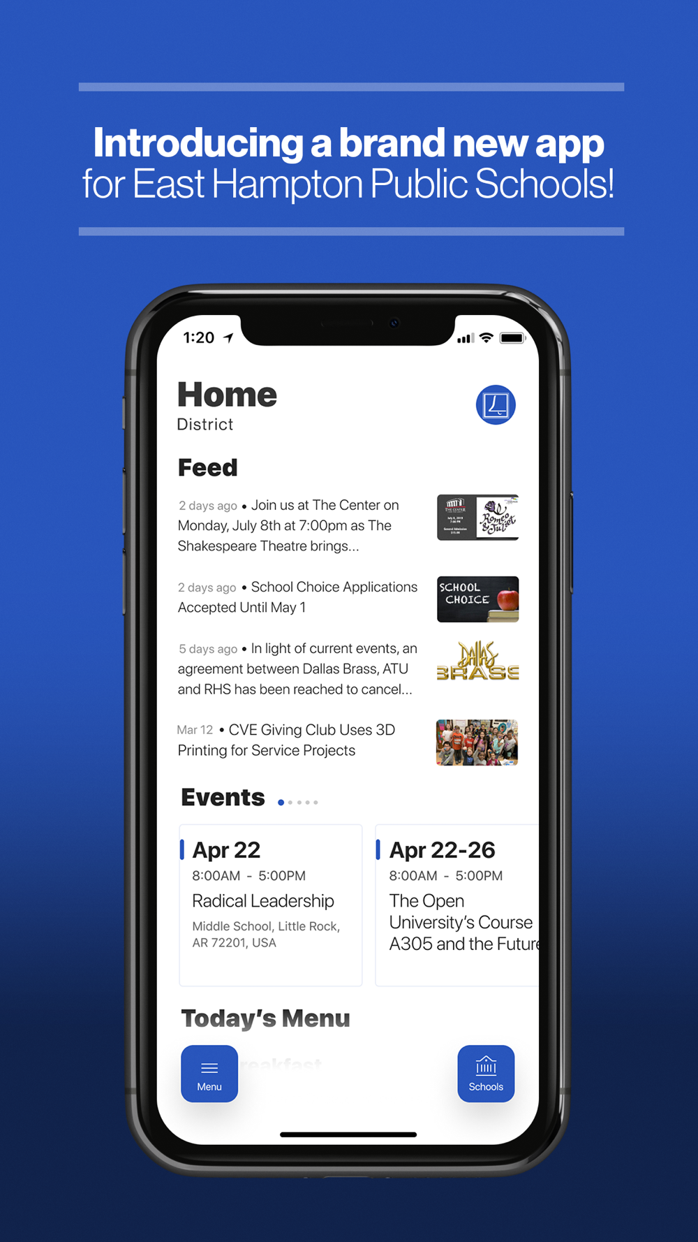 Introducing the improved East Hampton Public app!Our goal is to provide a better user experience through a revamped design with all the features you love and more.New and updated features include (but not limited to):-- Experience a user-friendly home screen with quick bits of the most recent information from the live feed, events, and dining sections.-- Set a default org, update org subscriptions, and opt-in and select push notification groups at the same time.-- Expand a calendar to view events for a selected date.-- Search for staff members and documents.