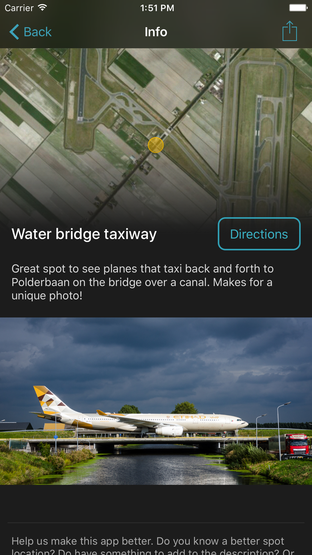 Tap on spots on the map to learn about locations that are great for spotting at this moment. Get directions there with Apple or Google Maps.