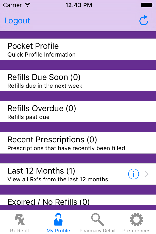 • Access a pocket profile--a summary of your recent prescriptions, prescribing physicians, allergy history and more