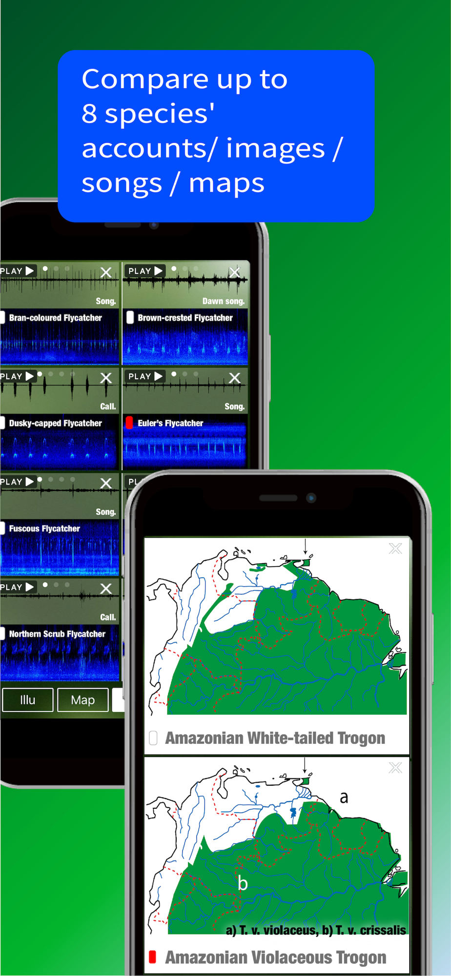 - Most advanced Compare Mode of any bird app - compare up to 16 species images / songs / maps