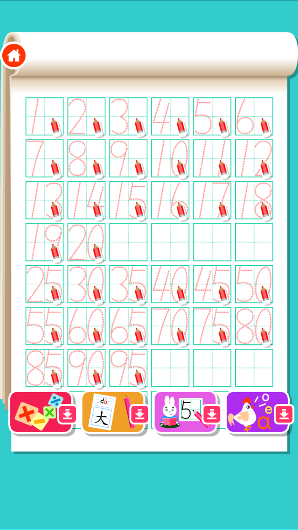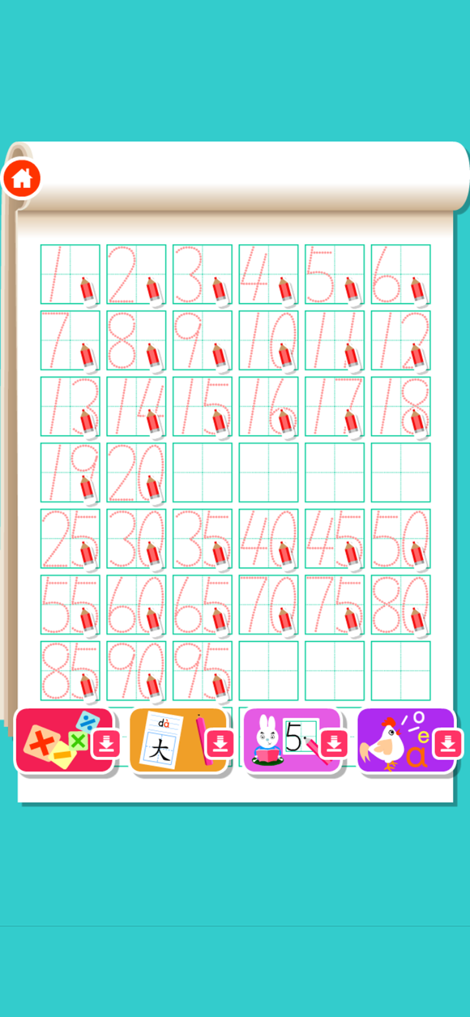 Easy and simple to learn digital writing 1-99, is the best educational software Kindergarten preschool children learn numbers.