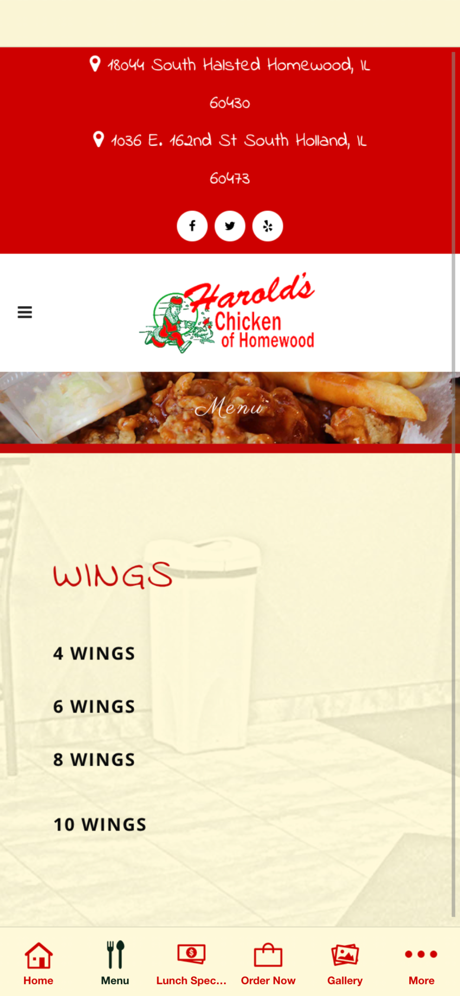 Harolds Chicken of Homewood serves great food at great prices!. Our mobile app is designed to enhance our customers experience by providing menu, ordering, coupons, loyalty and much more!