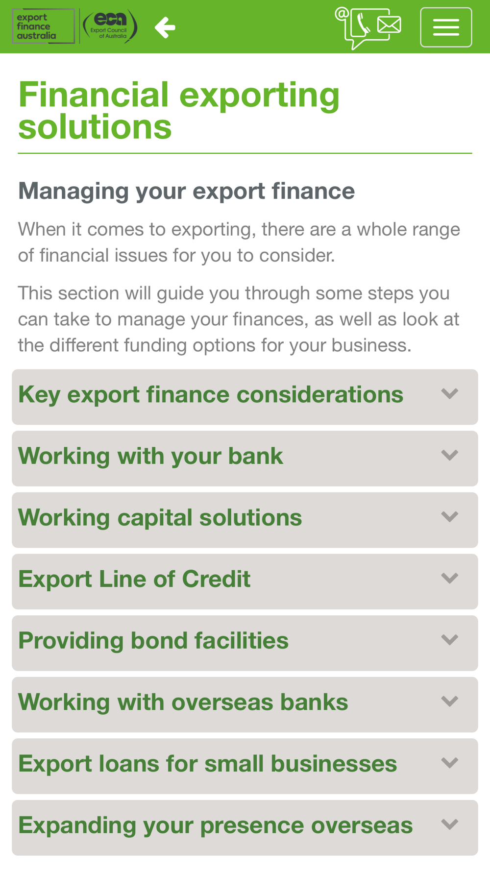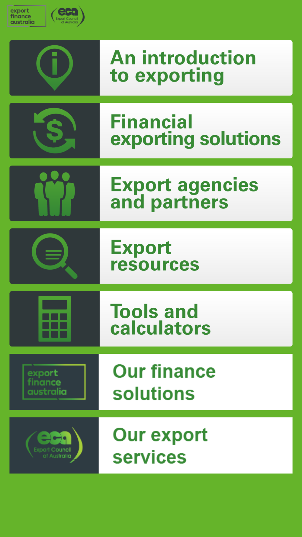 This online tool has been developed in response to export business needs and is a partnership between Export Finance Australia and the Export Council of Australia (ECA).