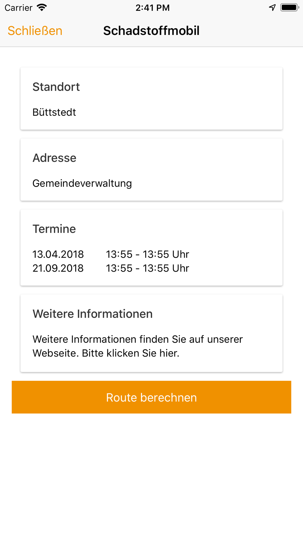 - Geolokation für die Standortanzeige von Wertstoffhöfen und Stellplätzen des Schadstoffmobils