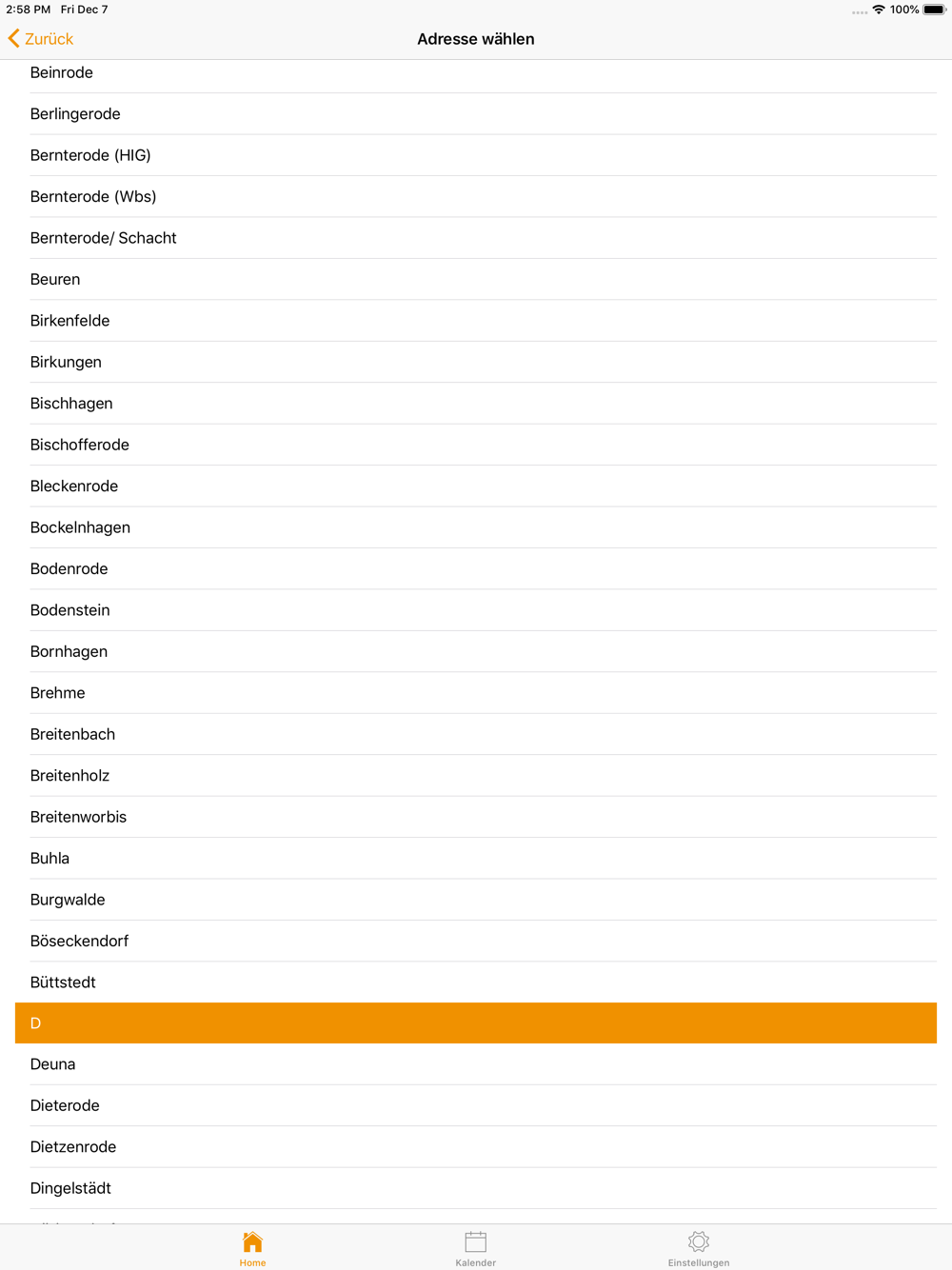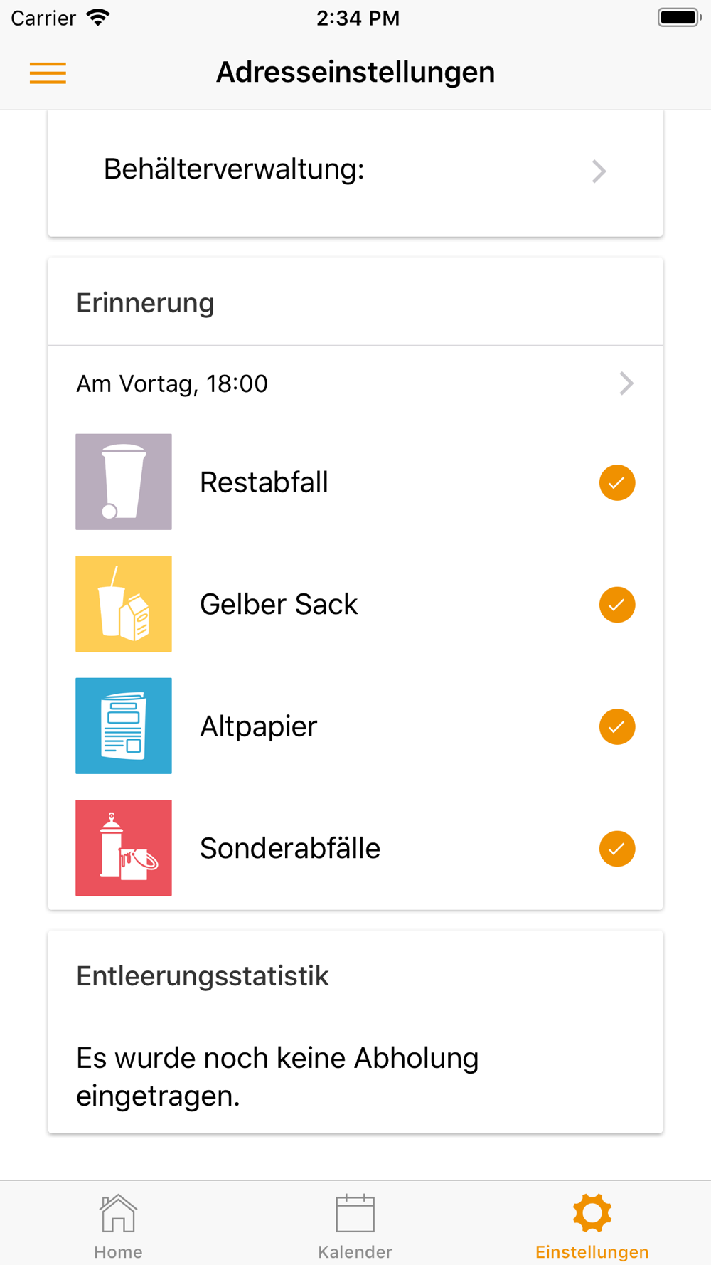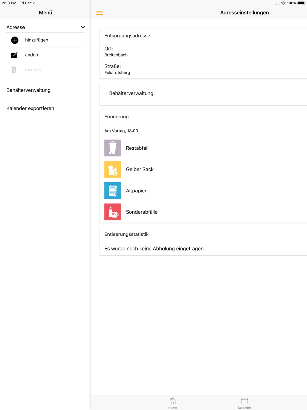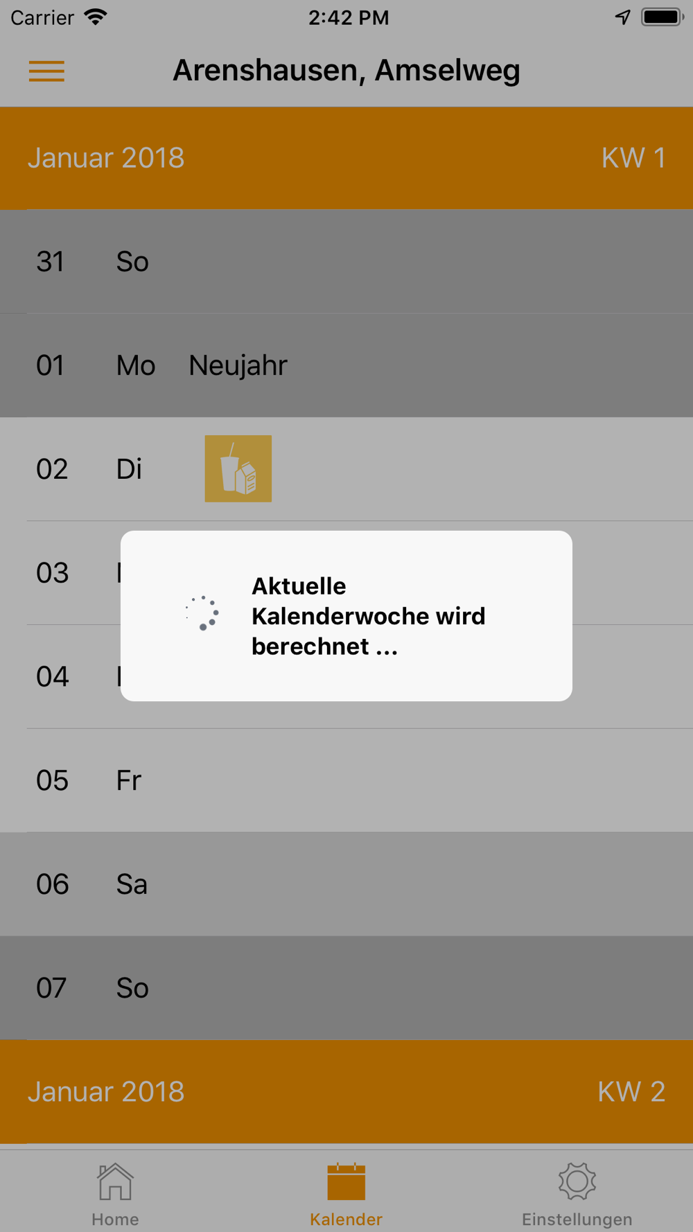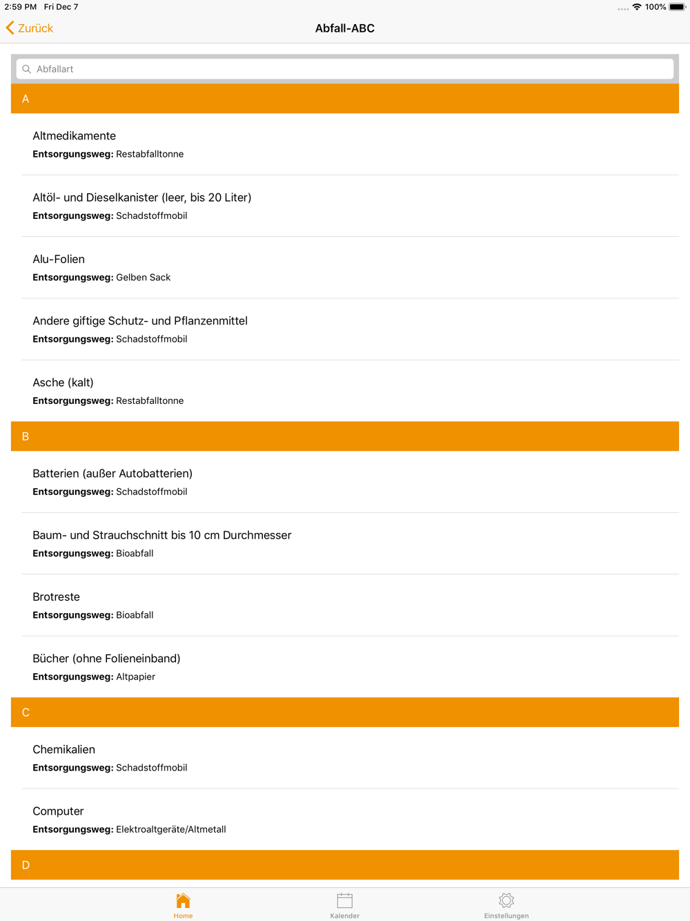 - Darstellung der Entsorgungstermine als Wochenansicht, Monatsansicht oder Liste