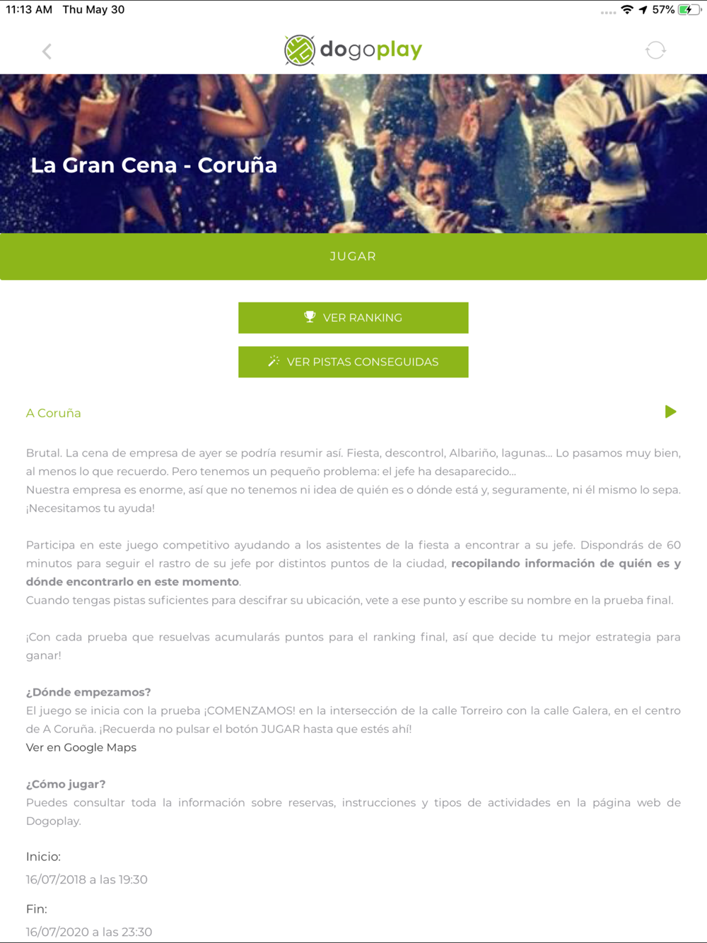 Organiza una partida con tu familia, amigos o empresa. Distribuye los participantes en equipos de 2 o 3 personas, y lucha por ser el mejor equipo. ¡Pero ojo! La velocidad no lo es todo. Dogoplay cuenta con un ranking de puntuación en tiempo real y solo aquellos equipos que avancen correctamente en la resolución de los enigmas conseguirán acabar en la cima del marcador.