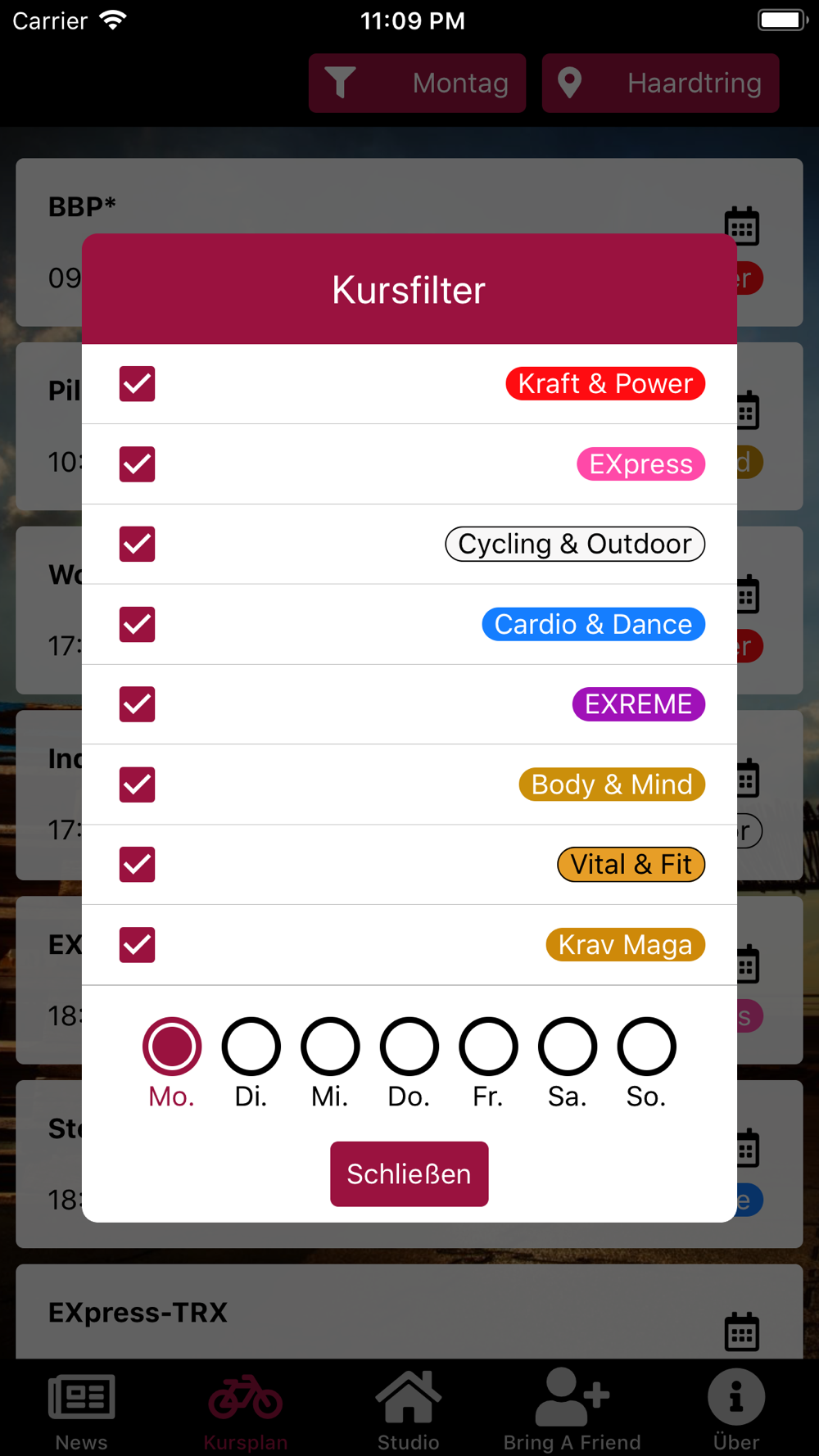 Weiter kann er durch das aktuelle Kursangebot stöbern und bei Interesse, den Kurs direkt in seinen Kalender eintragen lassen.