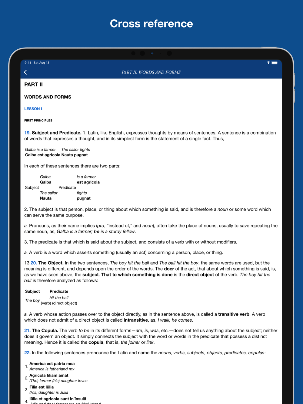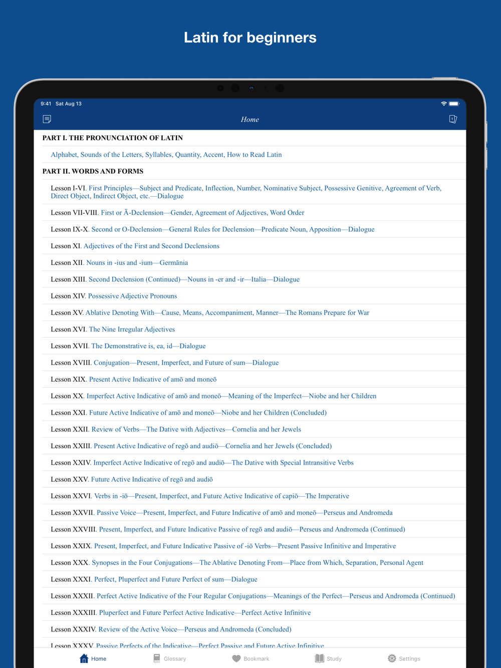 This app provides study materials and learning tools for you to learn Latin grammar and vocabulary.