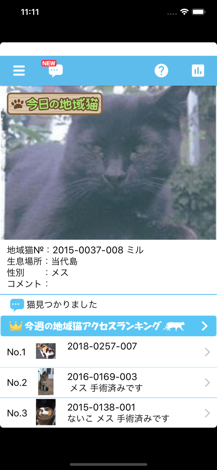 今日の地域ねこ、地域ねこランキングなど見る度に色々なねこの情報を見ることができます