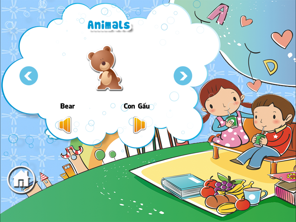 Bé Học Tiếng Anh với hình ảnh sinh động và phát âm tiếng việt và tiếng anh chuẩn mực sư phạm.