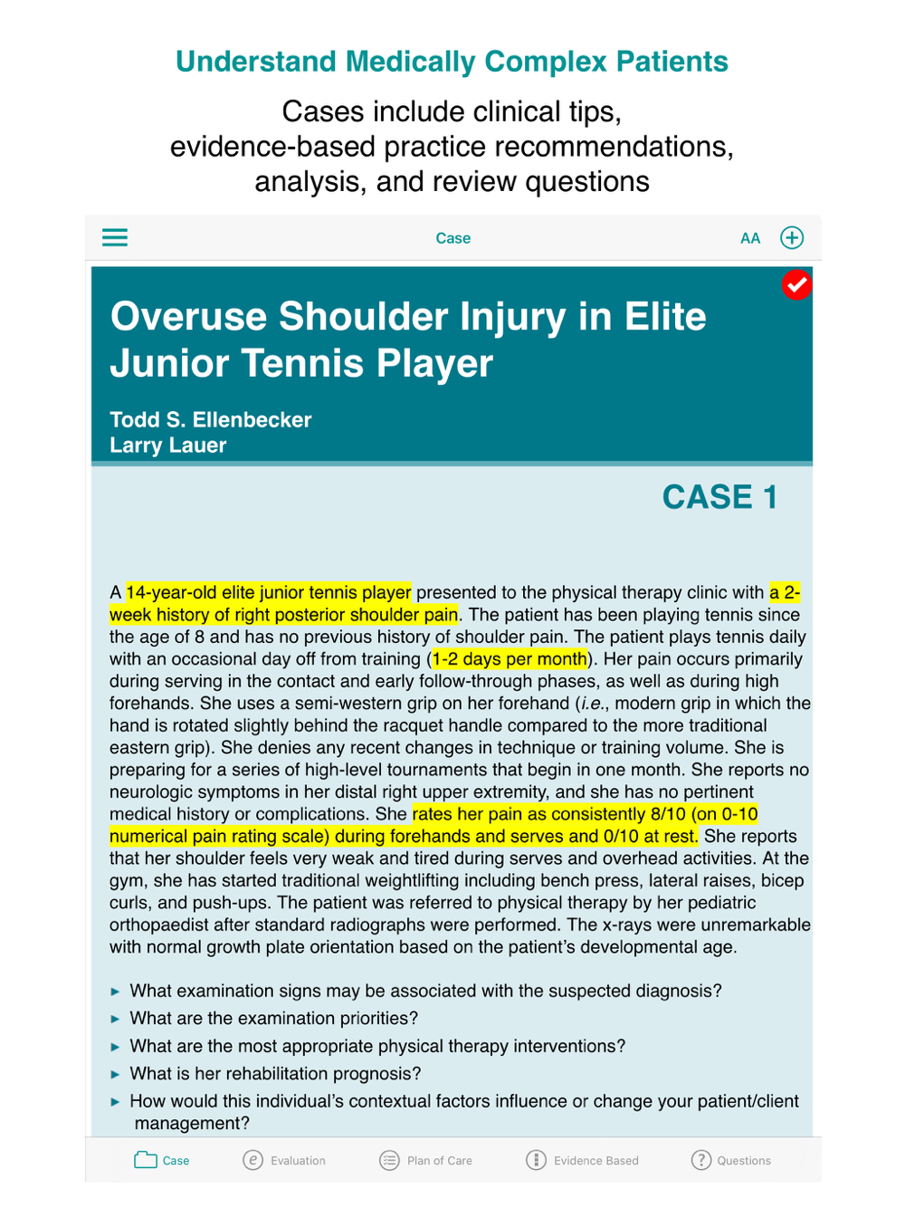 -Learn further from interactive questions at the end of each case, with explanations.