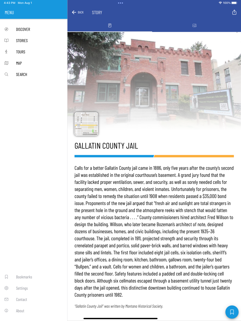 Historic Montana is a free mobile app to help you discover Montana’s rich cultural resources. Curated by the Montana Historical Society, Historic Montana shares the history and architecture of selected buildings, neighborhoods, and cultural sites listed on the National Register of Historic Places, the nation's official list of cultural resources deemed worthy of preservation. The app’s mobile markers reproduce National Register signs placed at the sites themselves as part of a program, funded through the state’s accommodations tax, to improve public knowledge and promote historic preservation.