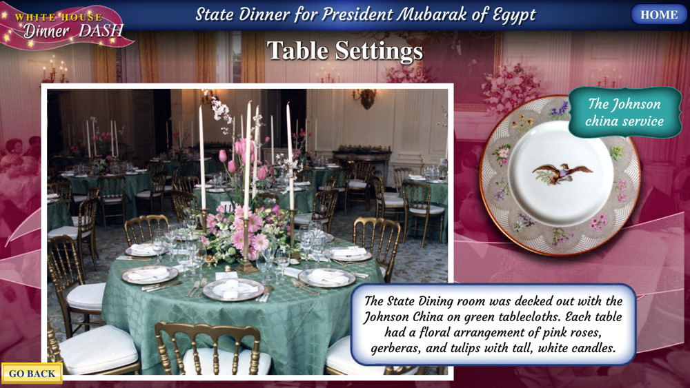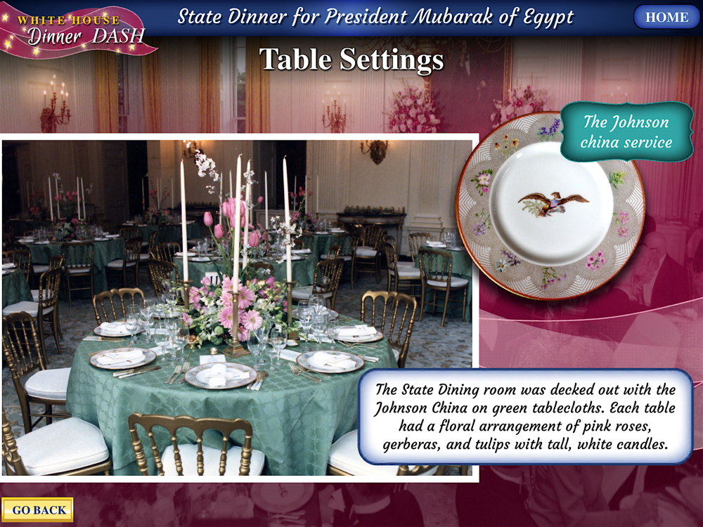 This is a lighthearted, fast-paced, educational game about White House State Dinners from the George Bush Presidential Library. Directed and produced by Dr. Shirley Hammond, Director of Education, George Bush Presidential Library and Museum
