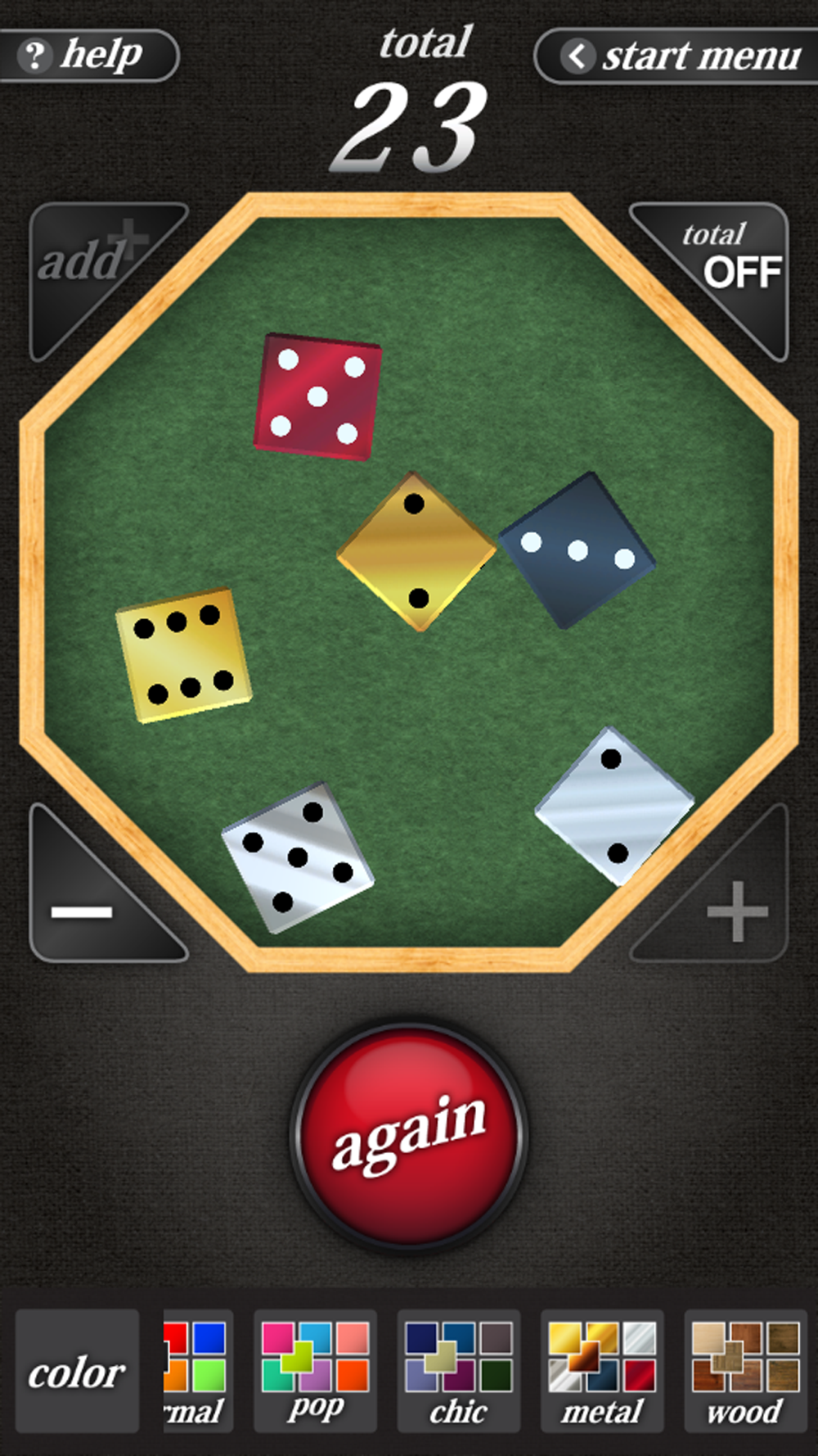 ・個数設定 1~6個の中でダイスの数を指定できます。