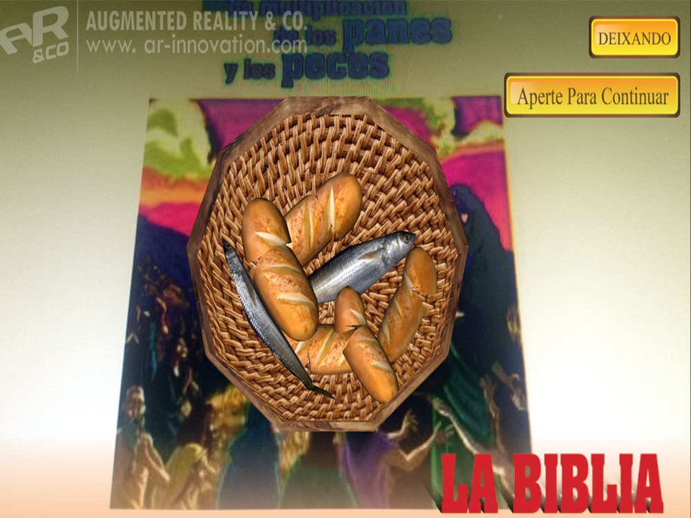 Venha desfrutar da primeira SAGRADA BIBLIA que usa a REALIDADE AUMENTADA e que mostra as passagens mais emblemáticas do antigo e novo testamento com esta nova tecnologia: a arca de Noé, a travessia do mar Vermelho, Moisés e as tábuas da lei, o nascimento de Jesus, a multiplicação dos pães e peixes...