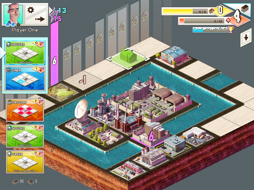 Alternatively engage in competitive city planning against challenging AI or local players. Take it in turns to place buildings in the same city and battle over the affection of your citizens!
