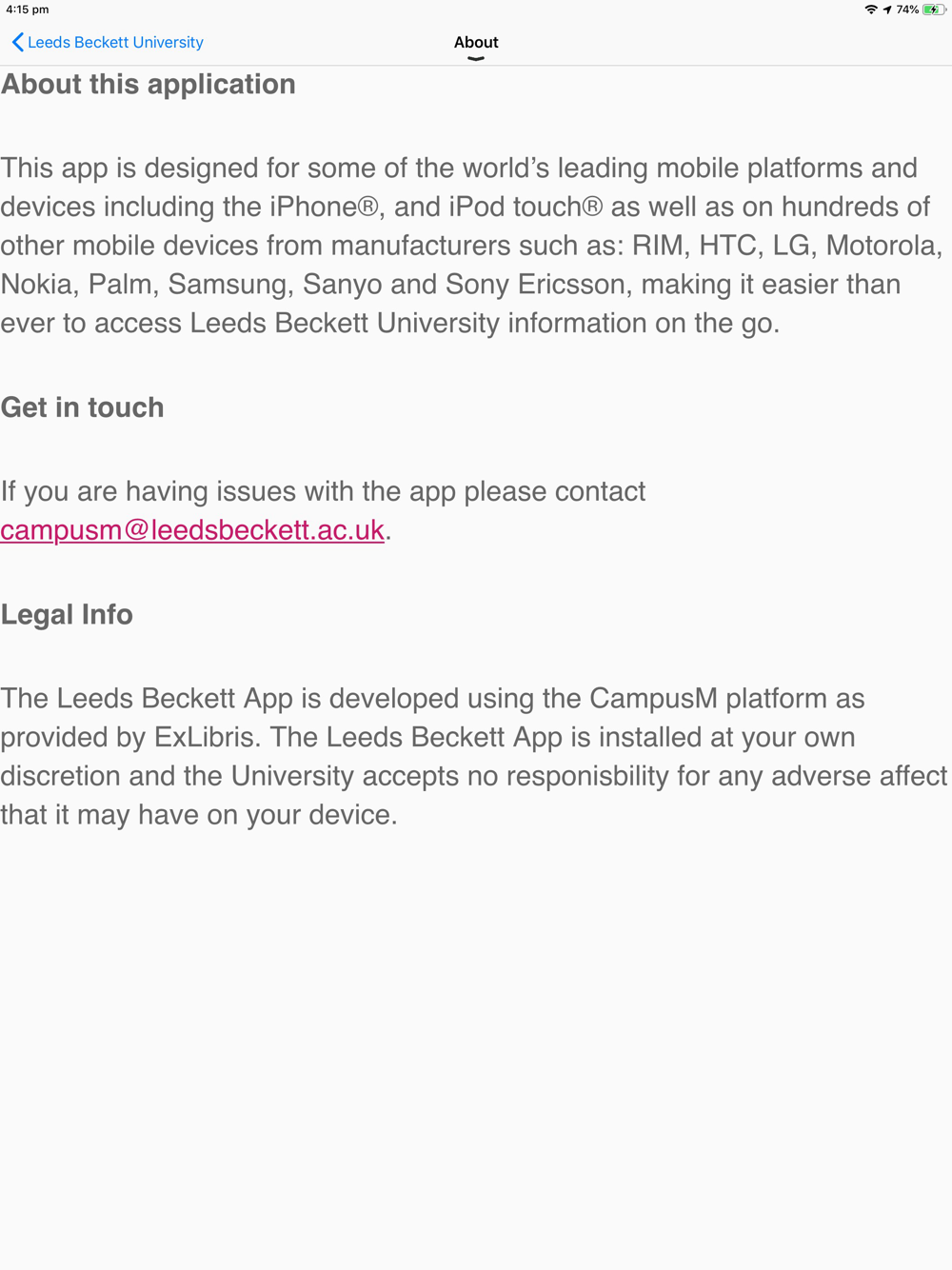 Welcome to Leeds Beckett University and the official mobile service that gives our students access to comprehensive information provided by the University, helping them make the most of the University and their academic studies.
