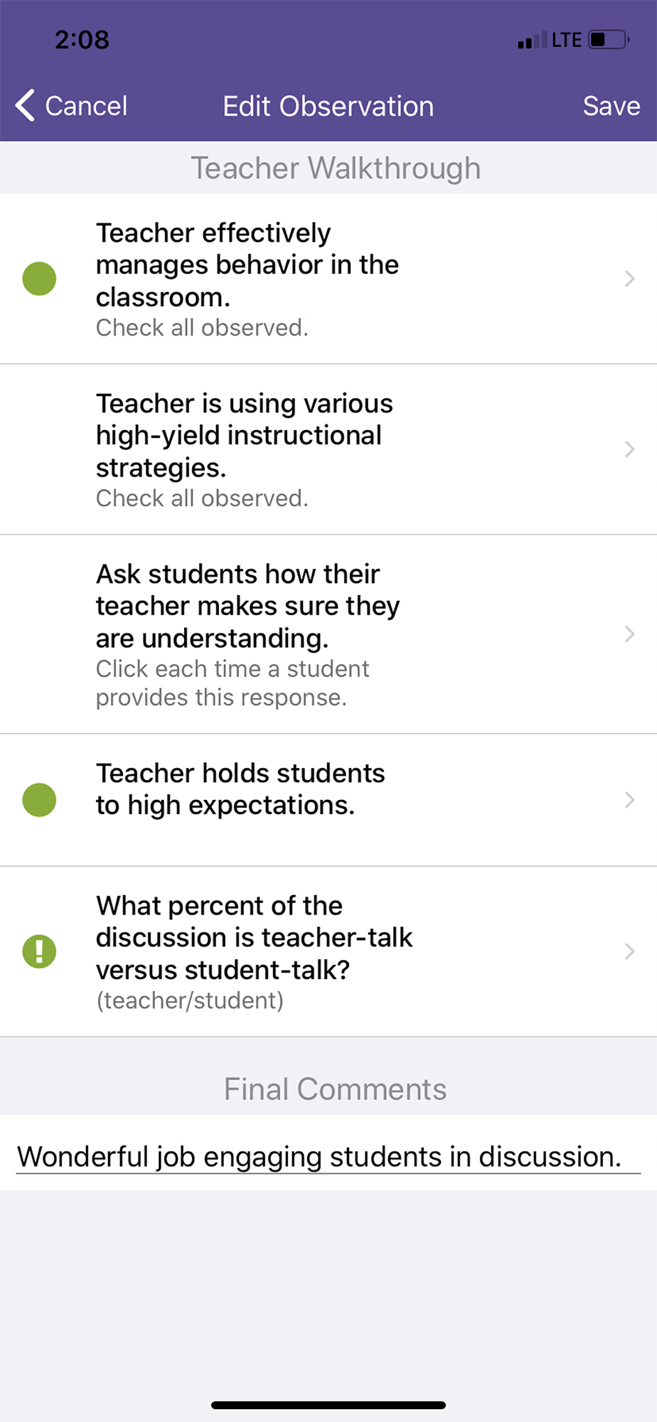 Coach: Observation results are instantly emailed to the user, and they're also available on his or her personal dashboard. This gives you a strong starting point for discussion and a guide in building your staff's professional learning plans. Communicate directly in the observation with two-way messaging.