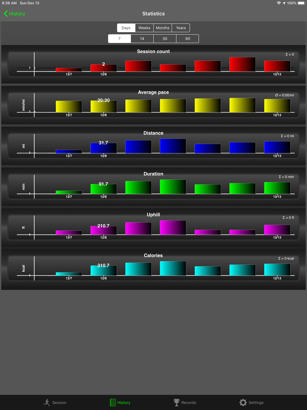 - Records. See your all-time records and a summary over all sessions