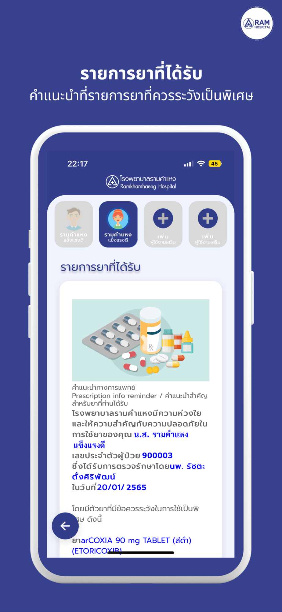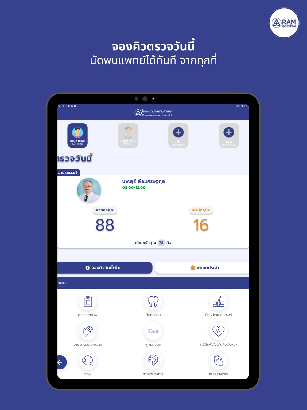 Ram Application use communication to member in Ramkhamheang Hospital . Collect new and information about medical knowledge and Treatment Technology and Promotion to people. You can also check your appointment queue and health information. Let you get complete information within one app.