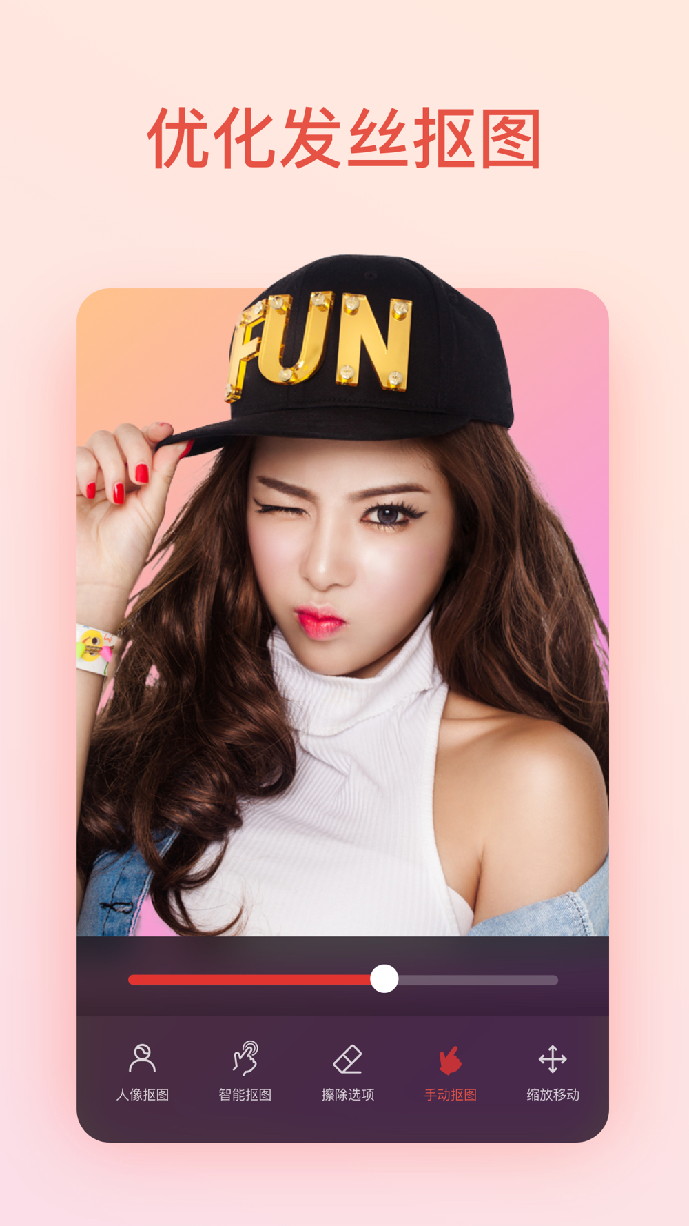 ---智能抠图:只需要稍微勾勒一下要抠图的主体,然后app会自动的完成抠图操作