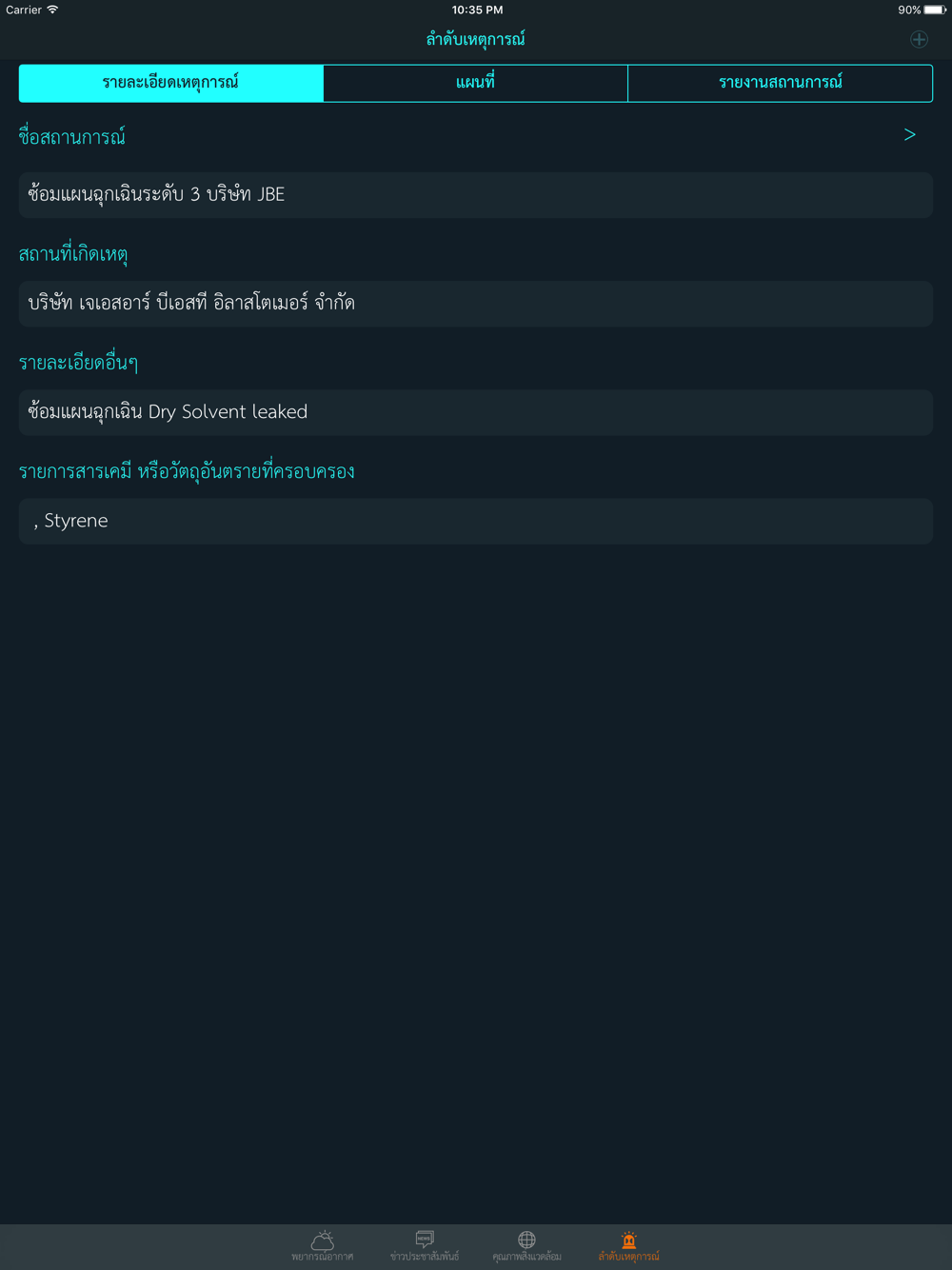 - แสดงข้อมูลเหตุฉุกเฉินในพื้นที่ อัฟเดทสถานการณ์ พร้อมดูข้อมูลพิกัดที่เกิดเหตุ