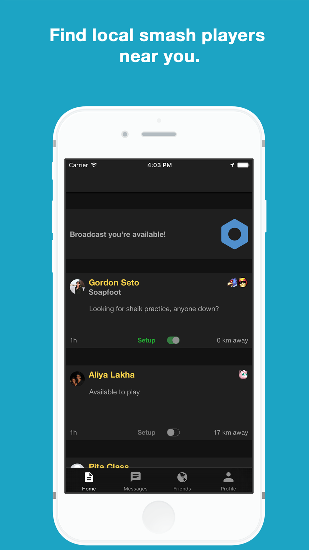 Find Melee players to play with in your community with Friendlies 20XX. Post when you are available to play, view other player's profiles, and message them to set up friendlies, meetups, and tournaments. Get Friendlies now and get good.